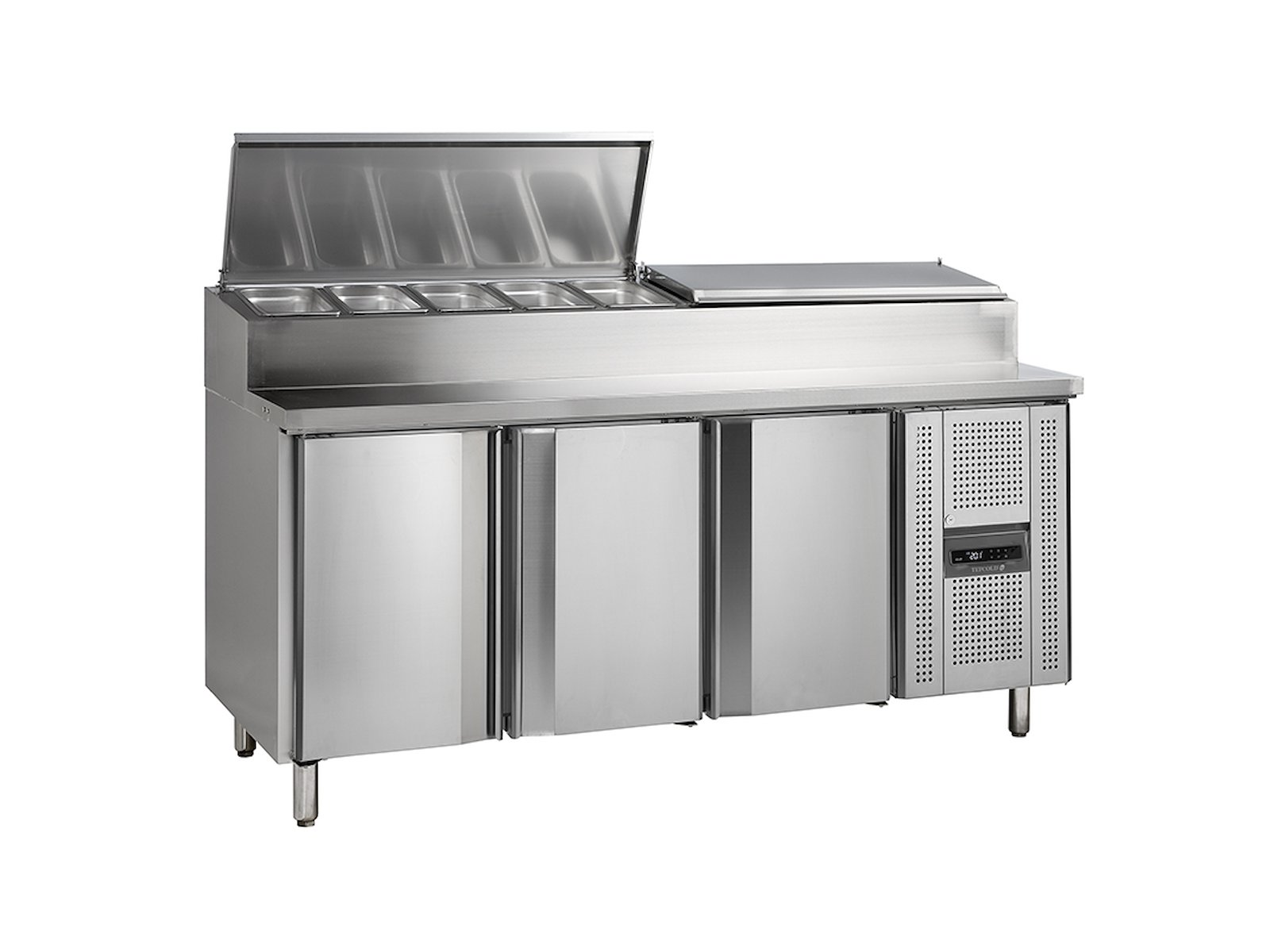 - La combinación de mesa de refrigeración y ensaladera ofrece almacenamiento y espacio de trabajo en uno solo