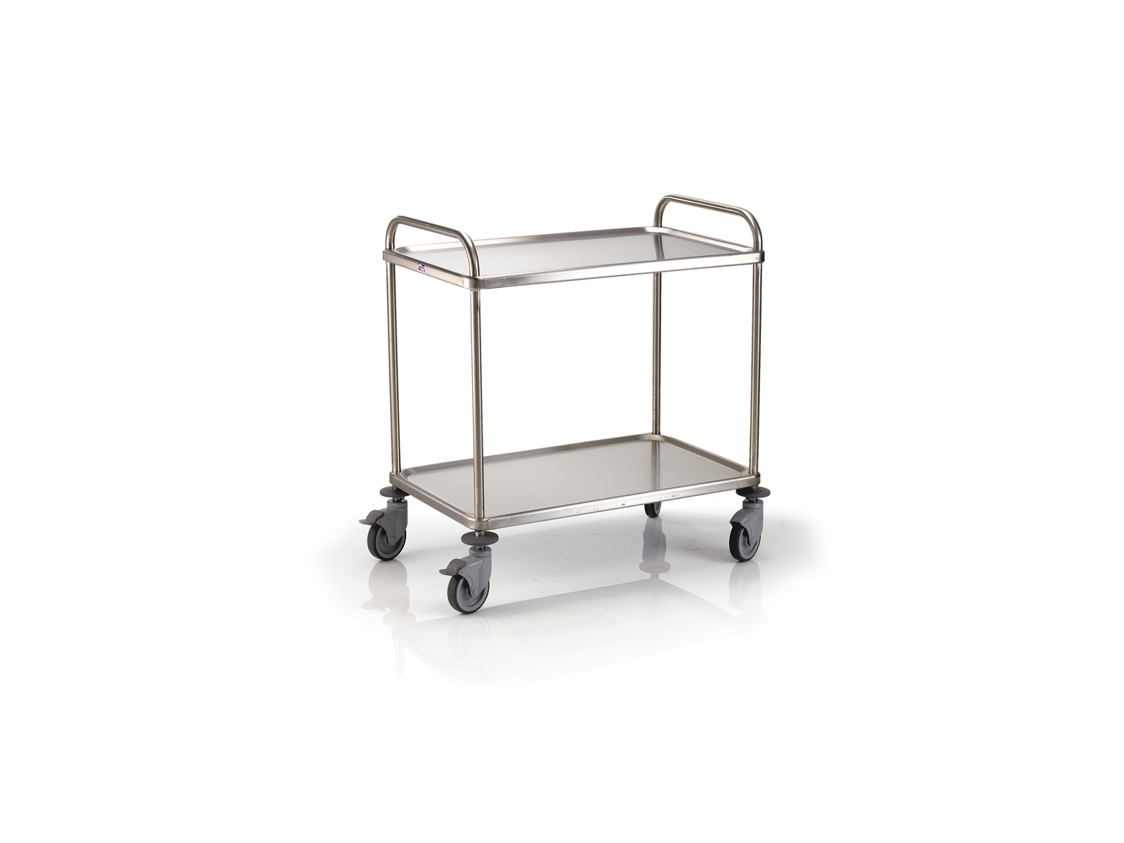 Las cuatro ruedas de composite, con un diámetro de 12,5 cm, aseguran que el carro se desplace con facilidad incluso con cargas pesadas. Dos de las ruedas están equipadas con frenos, lo que permite que el carro permanezca estable cuando sea necesario. Las ruedas son resistentes a temperaturas de -10°C a +40°C, lo que hace que el carro de servicio sea utilizable en diferentes entornos, desde cámaras frigoríficas hasta cocinas calientes. Con una altura de 96 cm, el carro está diseñado ergonómicamente para proporcionar una altura de trabajo cómoda para el personal, lo que reduce la carga en el uso diario.