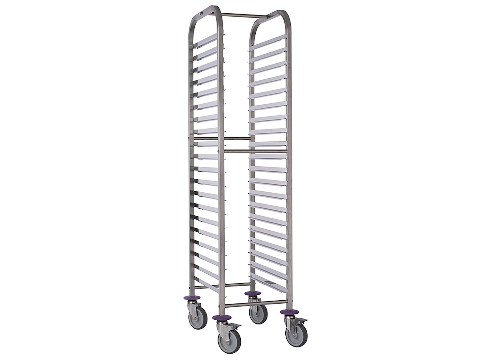 El carro está diseñado para bandejas estándar 1/1 GN y cuenta con 20 posiciones de inserción.