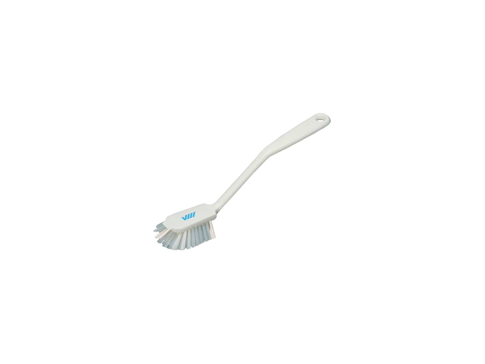 Las cerdas de poliéster de dureza media de la escobilla ofrecen el equilibrio adecuado entre una limpieza profunda y un tratamiento suave de las superficies. Esto hace que la escobilla sea adecuada para el uso diario en diferentes materiales, desde porcelana y vidrio hasta superficies más resistentes como ollas y sartenes. Además, las cerdas blancas facilitan la visualización del resultado de limpieza, ya que la suciedad se hace visible sobre el fondo claro.