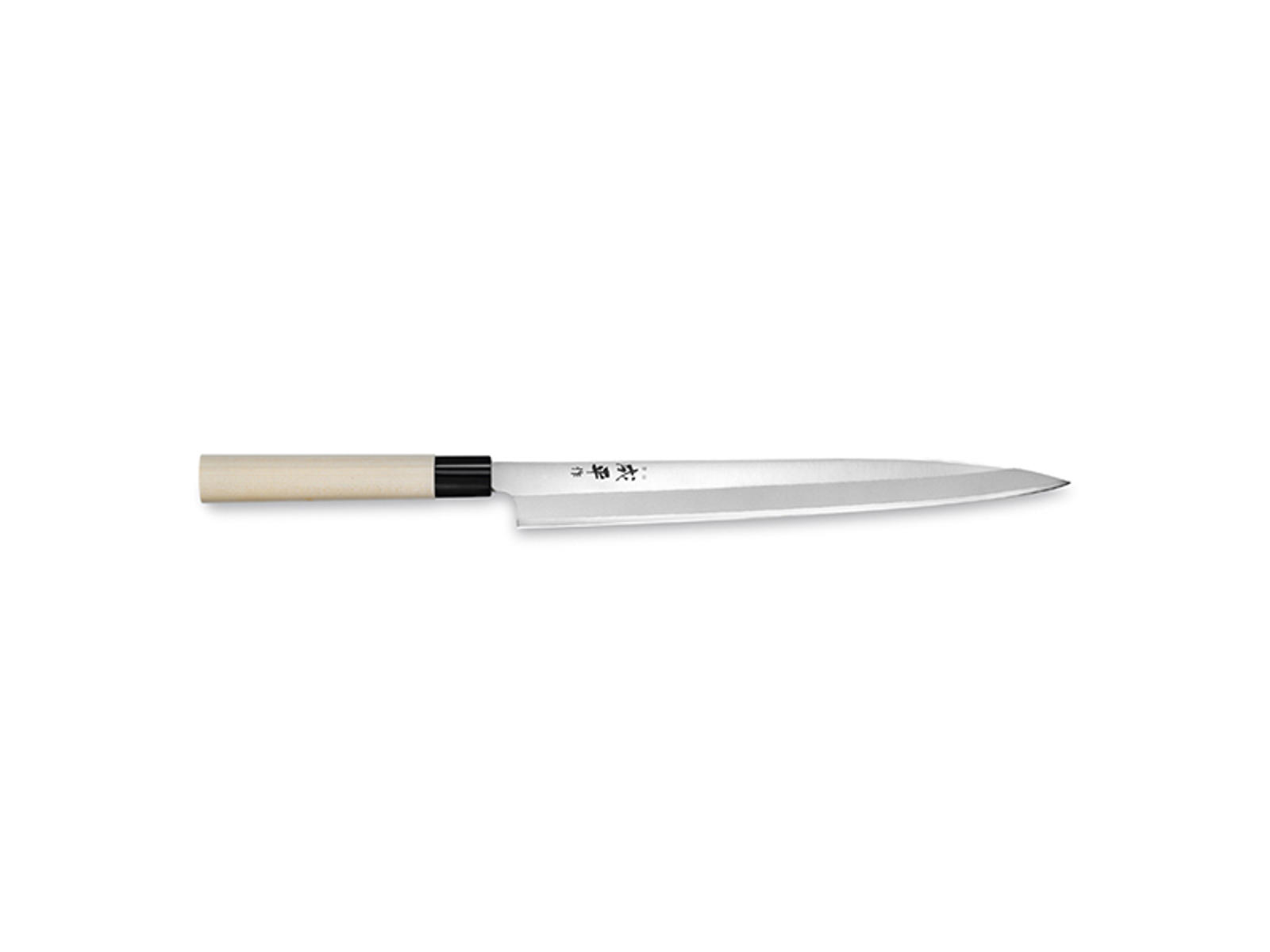 Este cuchillo de filetear de 26 cm de Narihira Kitchen combina la artesanía japonesa de cuchillos con un diseño ergonómico. Con una hoja delgada de acero duro y un cómodo mango de madera clara, este cuchillo te permite realizar fileteos y cortes precisos con mínima resistencia. La longitud de 26 cm lo hace especialmente adecuado para pescados y cortes de carne más grandes.