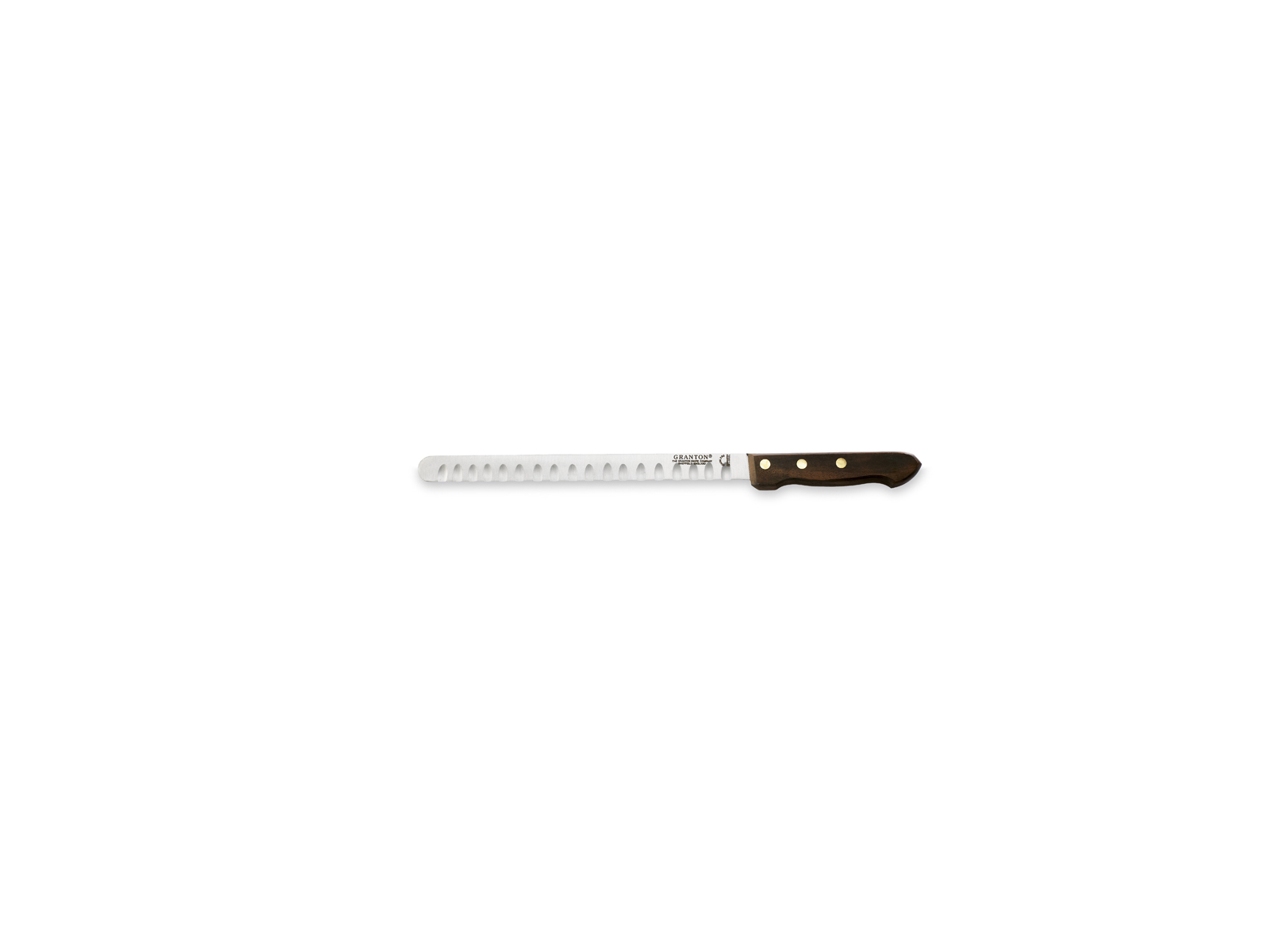 Este cuchillo para salmón Granton de 26 cm está diseñado específicamente para cortar salmón y otros pescados en rebanadas delgadas y uniformes. Gracias a las patentadas hendiduras de aireación a ambos lados de la hoja, el cuchillo se desliza a través del pescado sin desgarrar o aplastar la carne. El robusto mango de madera proporciona un buen agarre, mientras que el acero de Sheffield de primera calidad asegura un corte preciso cada vez.
