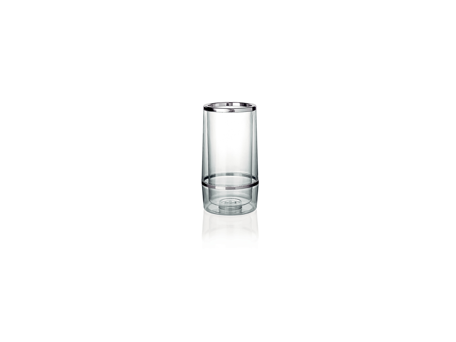 Este elegante enfriador de vino de WAS combina acrílico transparente con un borde de acero para un aspecto moderno. Con una altura de 23 cm y un diámetro de 11,5 cm, está diseñado para mantener tu vino a la temperatura adecuada, al tiempo que funciona como un elemento decorativo en la mesa. El material transparente del enfriador proporciona una impresión ligera y aireada.