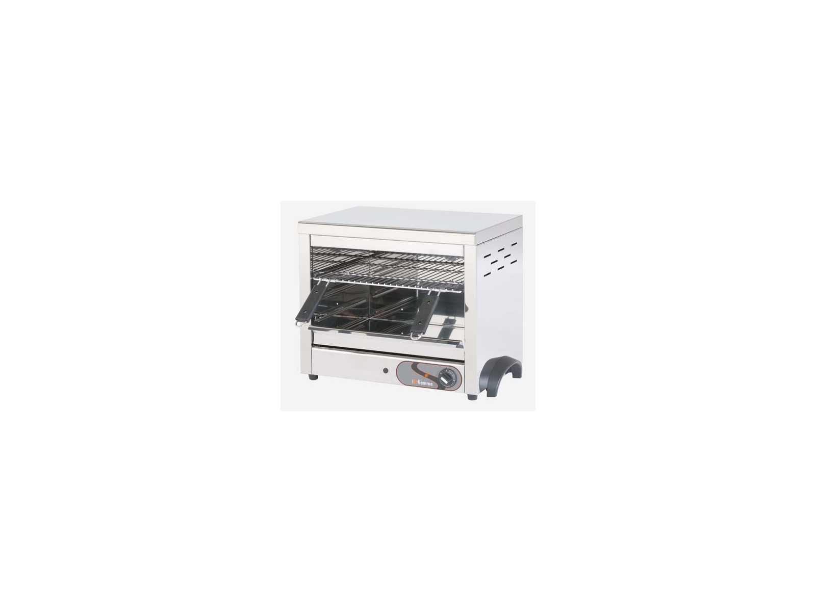Con un tamaño compacto de 600 x 400 x 455 mm y un peso de solo 15 kg, esta salamandra se puede integrar en cocinas más pequeñas sin ocupar demasiado espacio. La construcción en acero inoxidable no solo garantiza durabilidad, sino que también facilita la limpieza, un factor crucial en entornos de cocina ocupados. La amplia superficie de trabajo permite preparar varias porciones al mismo tiempo, aumentando la eficiencia durante las horas pico.
