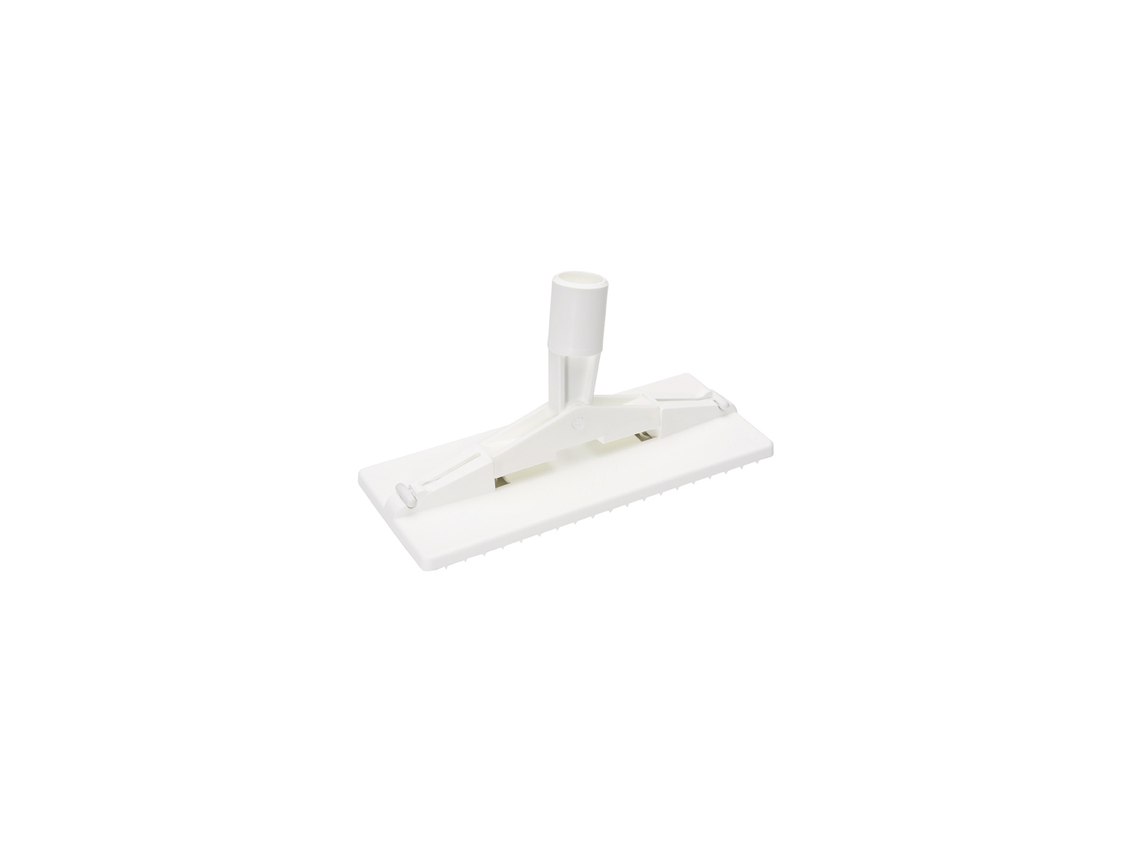 El soporte de nylon de limpieza mide 230 mm de largo, 100 mm de ancho y tiene una altura de 75 mm. Con un peso de solo 234 gramos, es fácil de manejar, incluso en tareas de limpieza prolongadas. El color blanco facilita la identificación de cualquier suciedad residual después de la limpieza, lo que ayuda a mantener altos estándares de higiene.