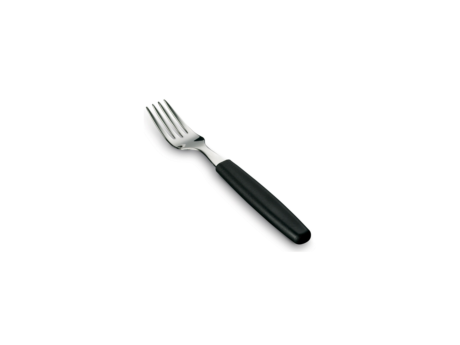 El tenedor mide 190 mm de longitud y pesa solo 40 gramos, lo que lo convierte en un utensilio ligero y manejable. El mango de plástico negro ofrece un buen agarre, mientras que el diseño asegura un buen equilibrio al usarlo. El material es duradero y de bajo mantenimiento, lo que hace que el tenedor sea adecuado tanto para el uso diario como para ocasiones especiales.