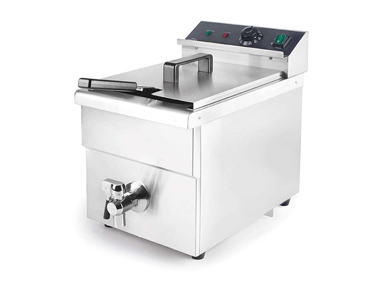 El grifo de drenaje incorporado facilita el cambio de aceite sin derrames ni riesgo de quemaduras. La freidora se entrega completa con tapa y cesta, lista para usar de inmediato. La protección contra sobrecalentamiento proporciona seguridad adicional en entornos de cocina ocupados, donde la atención puede estar dividida entre múltiples tareas. Con dimensiones de 570 mm de ancho, 290 mm de largo y 415 mm de alto, la freidora se adapta a la mayoría de las configuraciones de cocina profesional.