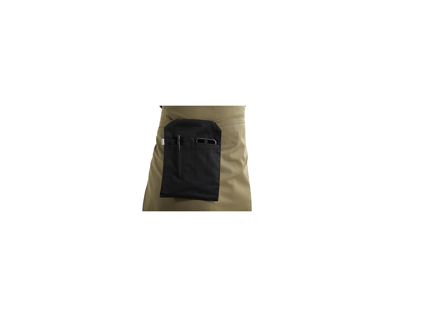 La billetera de camarero está diseñada con prácticos botones a presión, que permiten fijarla fácilmente a tu delantal. Esto asegura que permanezca en su lugar incluso durante los períodos de servicio más ajetreados. Su discreto color negro combina con cualquier atuendo de servicio y mantiene una apariencia profesional. Con unas dimensiones de 19 x 25,5 cm, la billetera ofrece suficiente espacio para el equipo necesario, sin estorbar durante el trabajo.