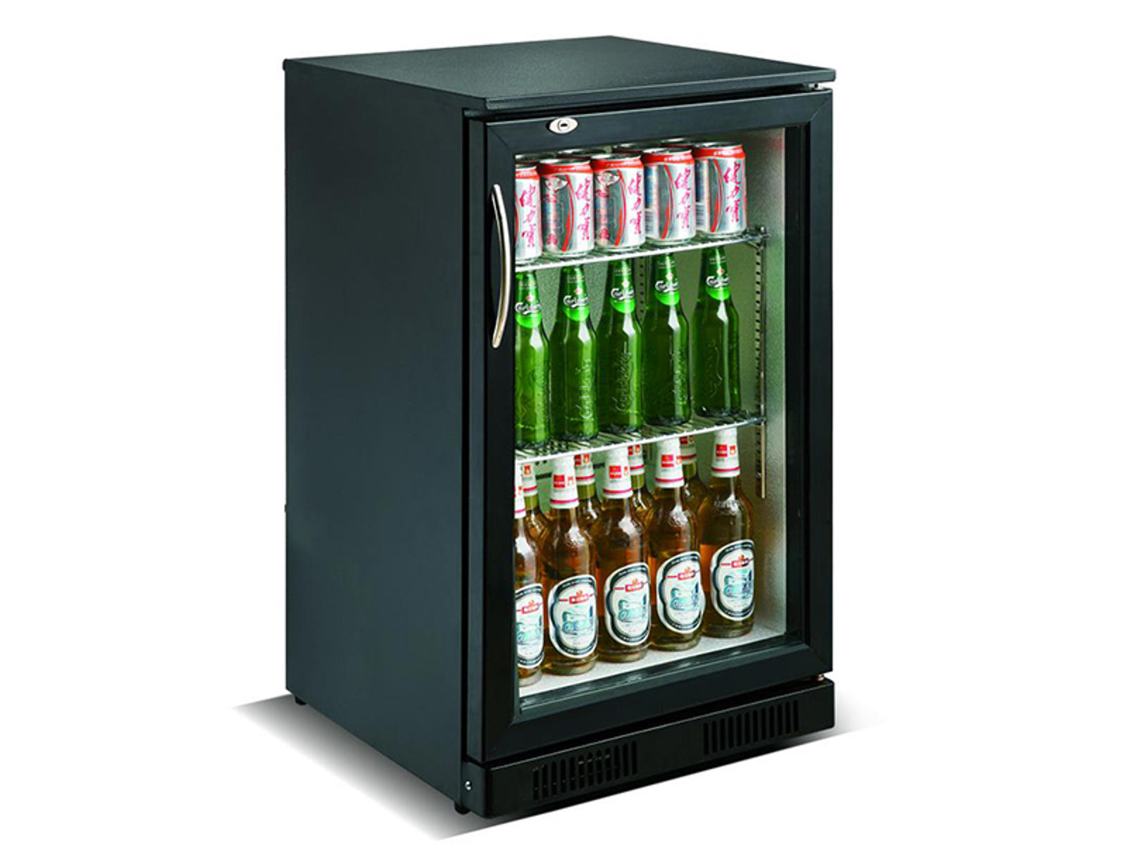 El compresor instalado permanentemente de 0,18 kW ofrece refrigeración estable incluso a temperaturas ambientales de hasta 25°C, lo que hace que el enfriador sea adecuado para la mayoría de los entornos interiores. El refrigerante R600A es una opción ecológica que reduce el impacto climático de tu negocio. La función de descongelación automática minimiza la necesidad de mantenimiento y asegura un funcionamiento óptimo constante sin interrupciones. La construcción de aluminio y acero garantiza durabilidad en el exigente entorno del bar.