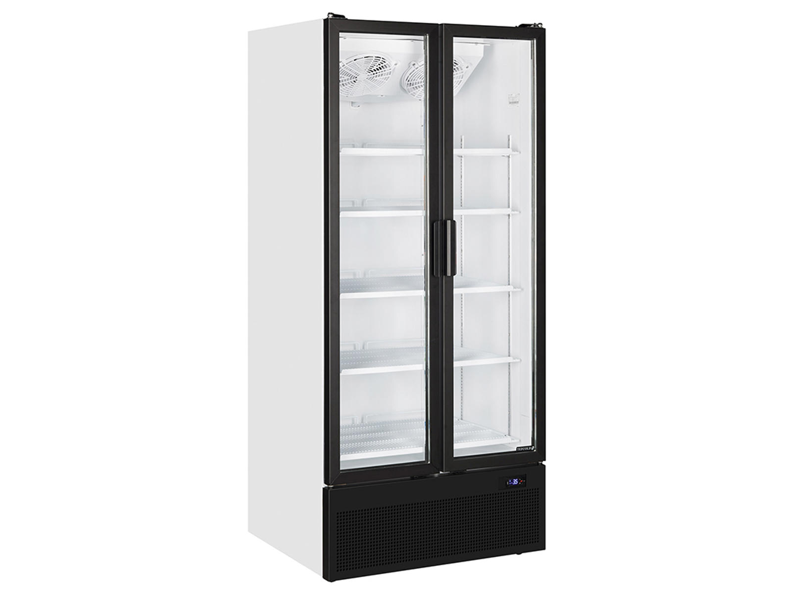 • Espacioso exhibidor refrigerado de 524 litros con dos puertas de vidrio autoadhesivas y luz superior integrada para una óptima exhibición de productos