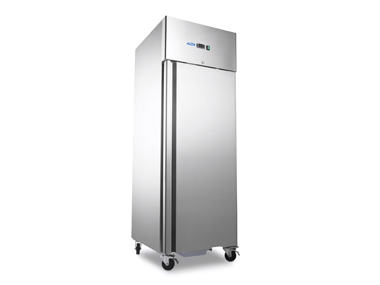 Este congelador profesional de Maxima ofrece una amplia capacidad de 800 litros con espacio para bandejas de tamaño estándar 60x40 cm. Construido en acero inoxidable duradero tanto en el interior como en el exterior, el congelador asegura un enfriamiento fiable y eficiente entre -10°C y -20°C con el refrigerante ecológico R290.