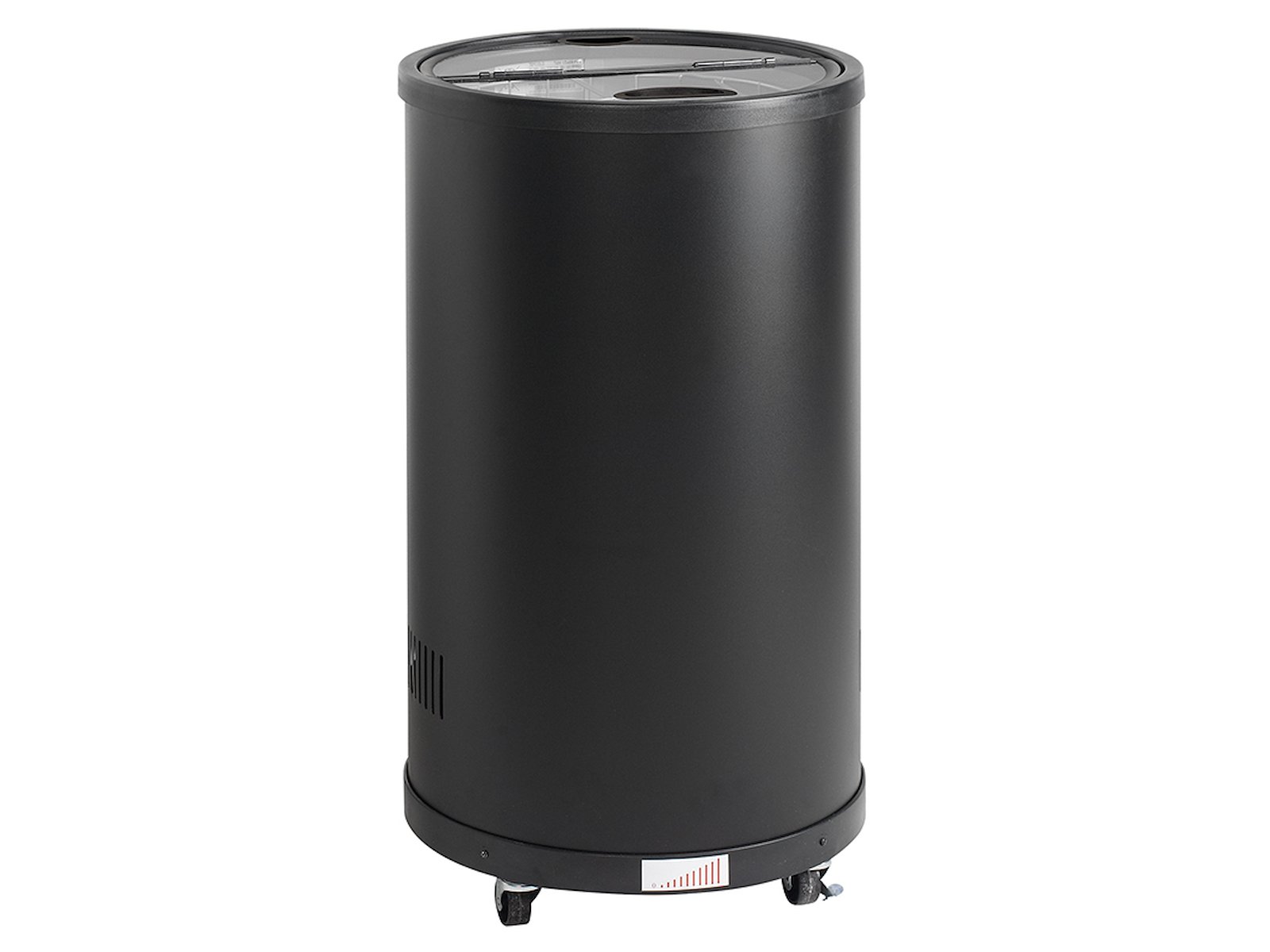 Con espacio para hasta 84 latas de 330 ml, 42 latas de 500 ml, 42 botellas de 330 ml o 38 botellas de 500 ml, el barril refrigerado te permite tener una amplia selección de bebidas frías listas para la venta. La superficie blanca puede ser utilizada para branding con folletos o logotipos, lo que la convierte en una herramienta valiosa de marketing en lanzamientos de productos, campañas de temporada o actividades de patrocinio.