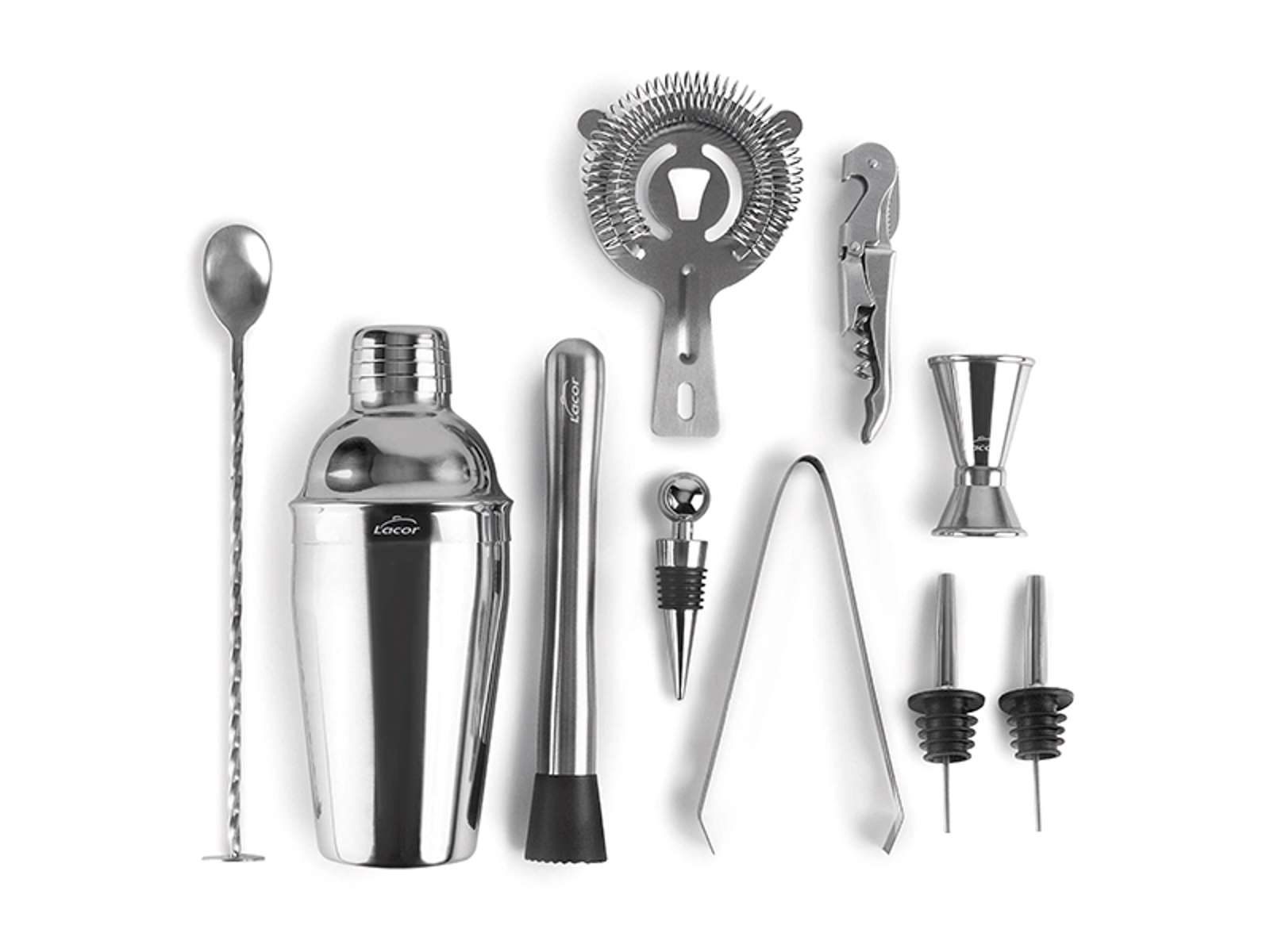 • Un set completo de bartender de 10 piezas en acero inoxidable de alta calidad