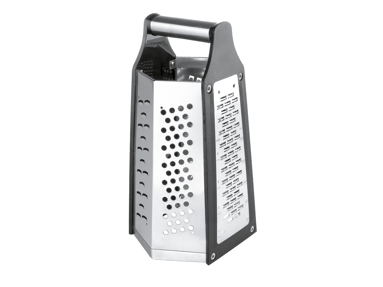 Con este rallador obtienes una herramienta multifuncional que realiza diversas tareas en la cocina. Las 6 superficies de rallado especialmente diseñadas te permiten preparar desde queso rallado fino y verduras gruesas hasta rodajas finas de pepino o patata. La construcción en acero inoxidable asegura que las superficies de rallado se mantengan afiladas incluso tras un uso frecuente, lo que significa que puedes trabajar de manera eficiente sin tener que ejercer un esfuerzo innecesario.