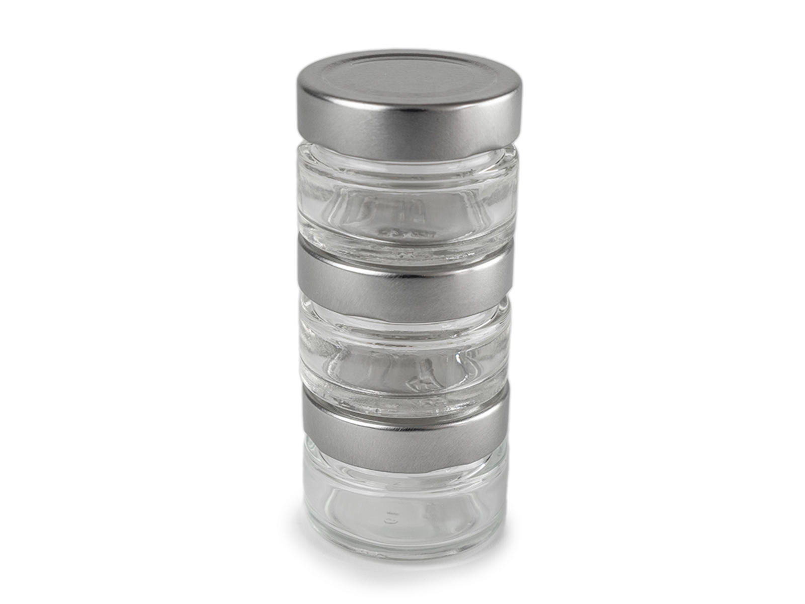 Este set incluye 3 envases de vidrio idénticos que pesan en total 378 gramos. Los envases están diseñados específicamente para el molinillo de pimienta Peugeot modelo 41731 y no son compatibles con otros modelos. El vidrio es de alta calidad, resistente al desgaste y presenta las especias de manera elegante.
