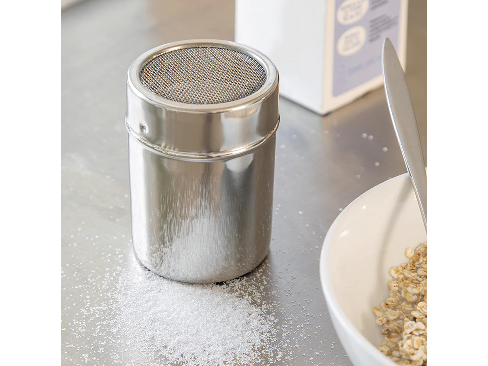 La strødåse está diseñada principalmente para ingredientes secos como cacao, canela y azúcar glas. Los ingredientes húmedos pueden agruparse y obstruir la tapa de malla.