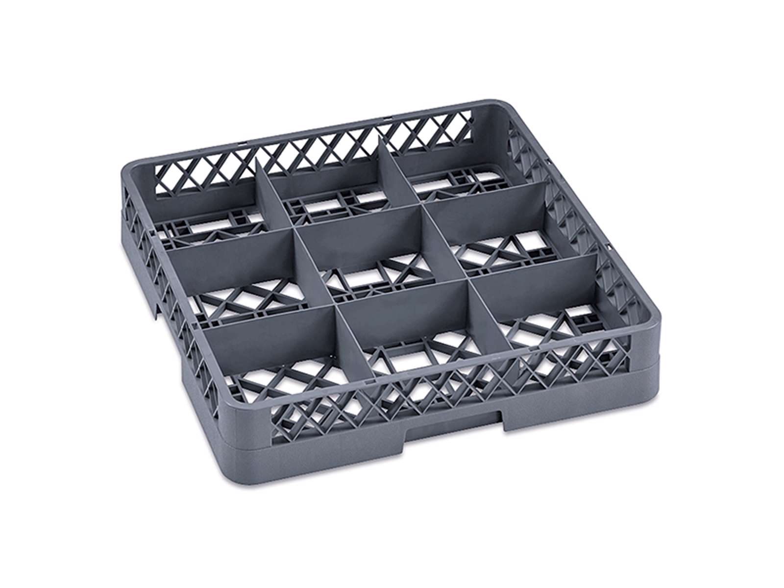 La bandeja de lavado mide 500x500x100 mm y está fabricada en polipropileno duradero. Los 9 compartimentos tienen cada uno dimensiones de 15,5x15,5 cm con una profundidad de 8,7 cm. El color gris facilita la identificación de cualquier residuo o suciedad después del lavado, para garantizar una limpieza óptima.