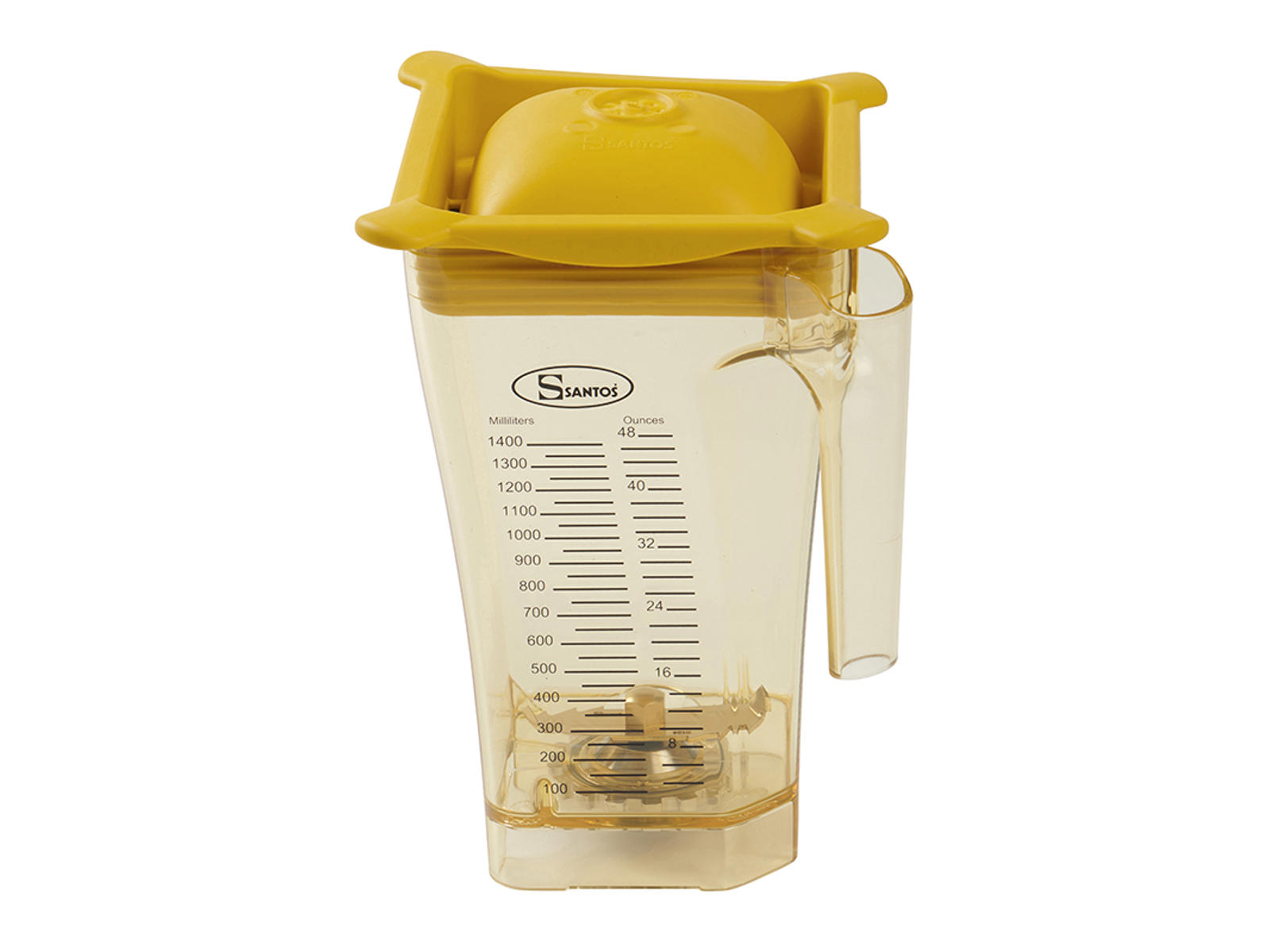 Esta jarra está fabricada en plástico duradero y libre de BPA con una capacidad de 1,4 litros. Su color rojo la hace fácil de identificar y le da un aspecto profesional a tu estación de trabajo. La jarra está equipada con un acoplamiento integrado que asegura una transferencia de potencia óptima desde la base del motor. Es compatible con la Licuadora Compacta Sin Escobillas Santos #66 y cumple con todos los estándares de calidad de Santos.