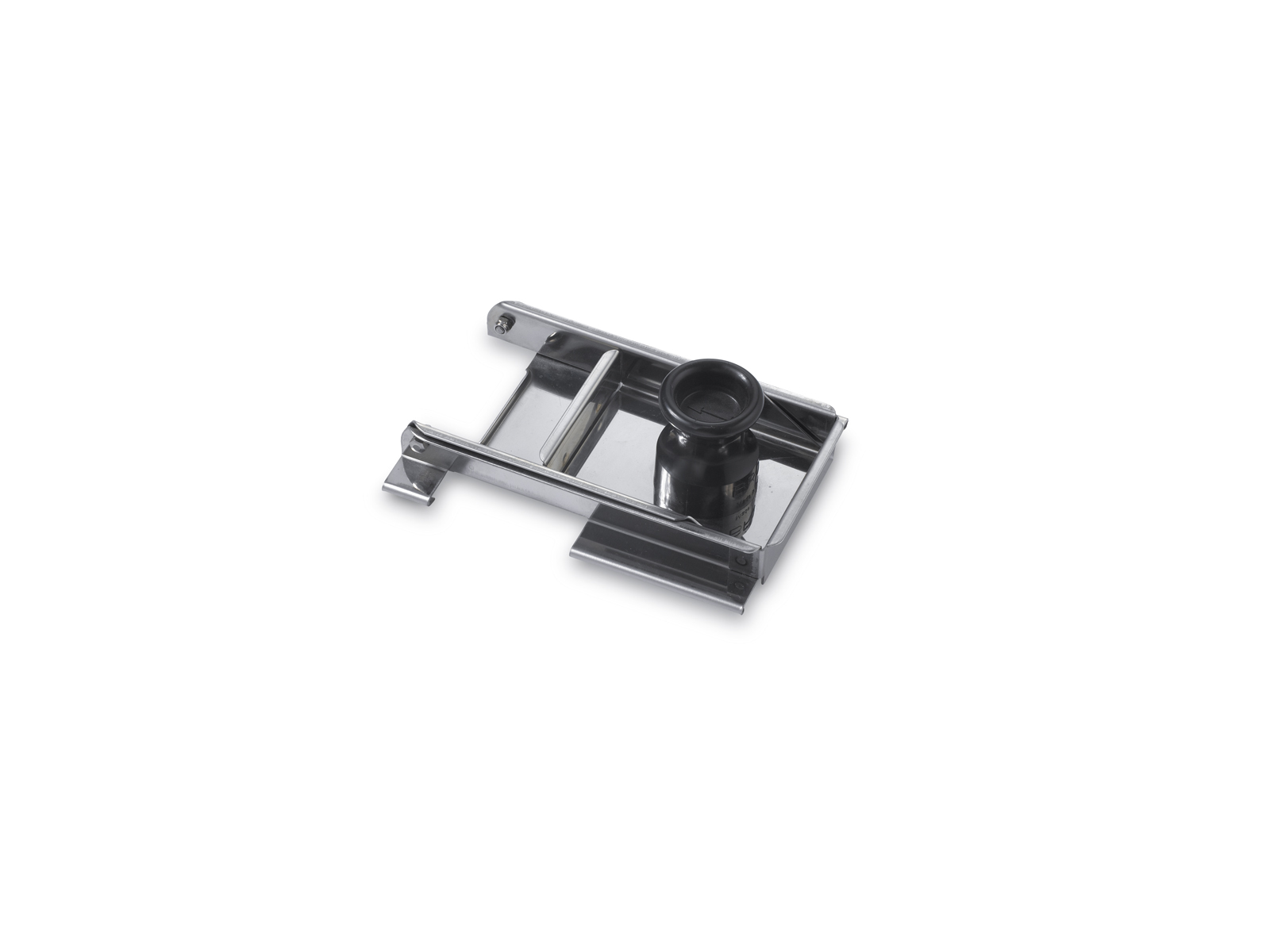 El deslizador Louis Tellier 9824 está fabricado en acero inoxidable duradero con un mango ergonómico de plástico. Este accesorio especialmente diseñado se adapta perfectamente a la mandolina Louis Tellier 9824 y protege tus manos mientras cortas frutas y verduras. El deslizador está diseñado para mantener los alimentos seguros durante el proceso de corte.