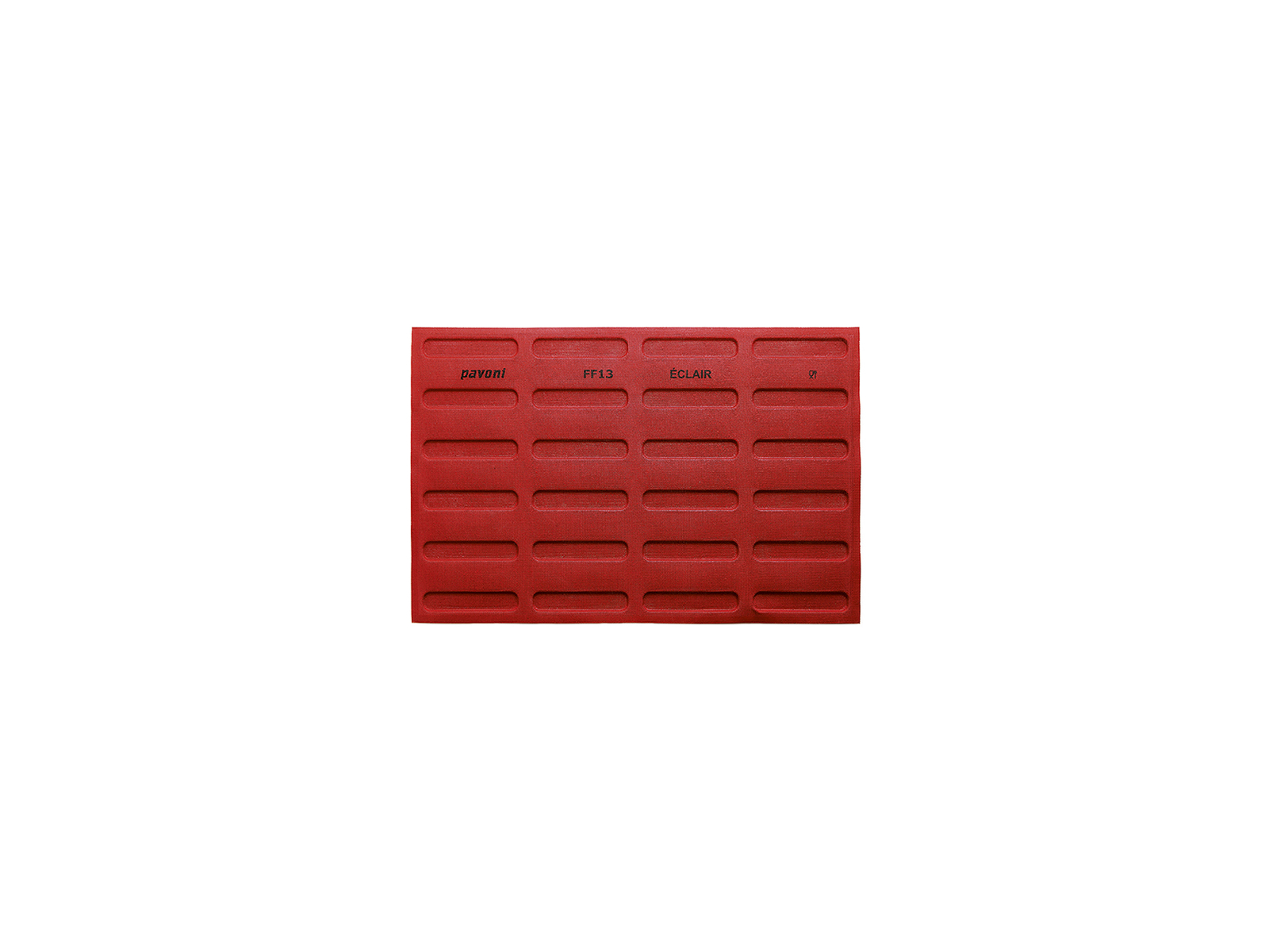 El molde rojo Pavoni Formasil te permite crear 24 creaciones rectangulares uniformes en un solo proceso. El molde mide 400 x 600 mm y está fabricado con silicona de primera calidad, lo que garantiza un desmoldeo fácil. Cada una de las 24 cavidades tiene un volumen de 71 ml y mide 150 x 30 mm.