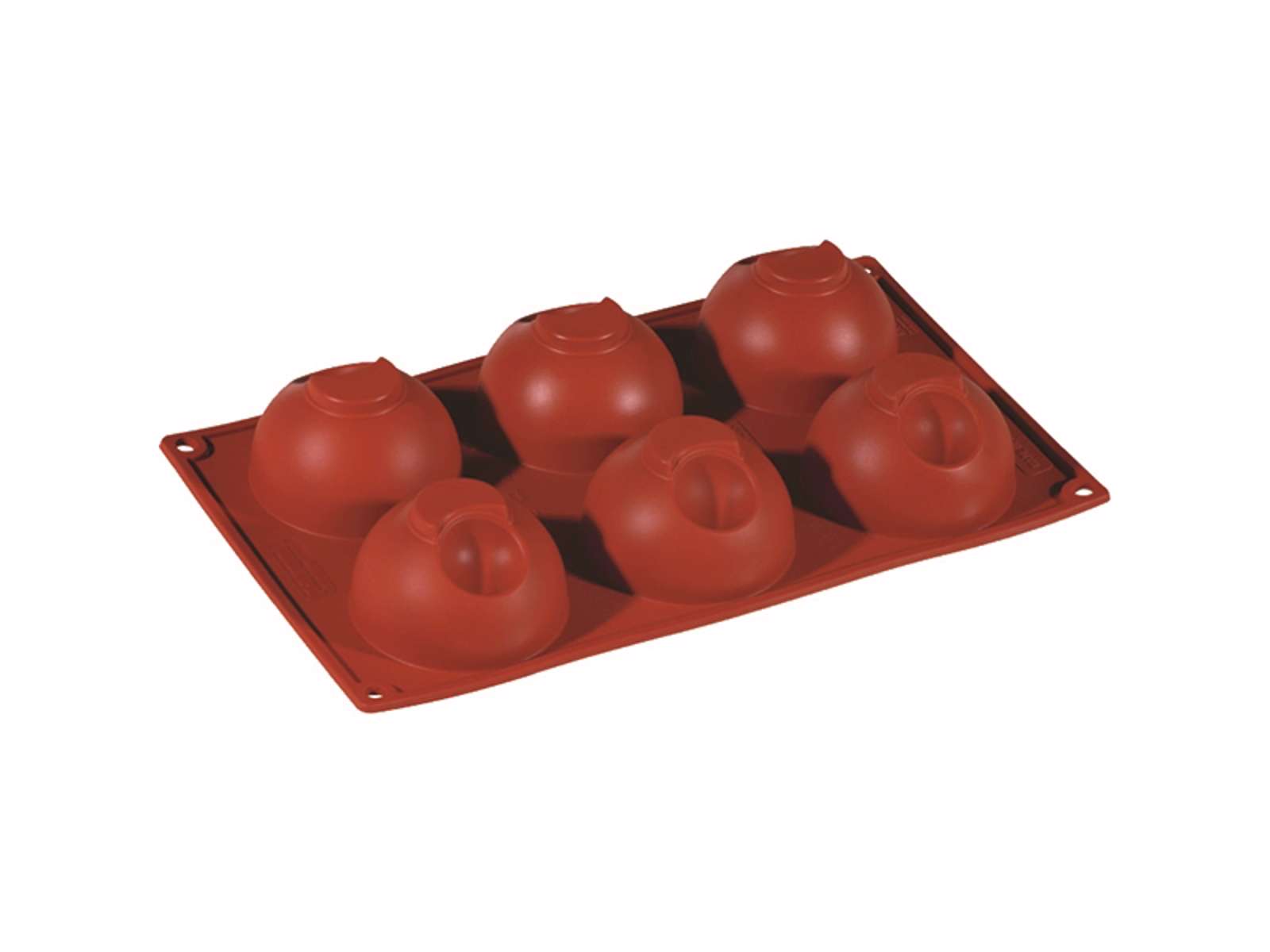 El molde está fabricado con silicona aprobada para uso alimentario en un intenso color rojo, lo que facilita su identificación en la cocina. Con medidas precisas de 175x300x43 mm, se adapta como una bandeja 1/3 GN. Cada una de las 6 cavidades tiene un diámetro de 75 mm y puede contener 128 ml. La alta resistencia a temperaturas de -40°C a +280°C proporciona máxima utilidad en todos los procesos de cocina.