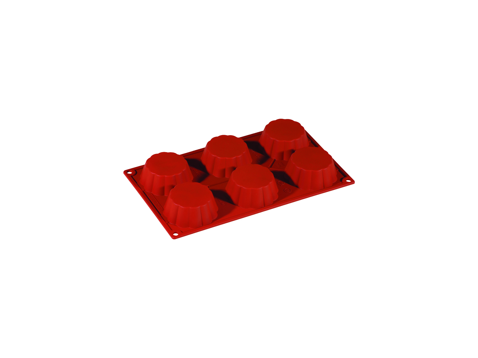 Cada una de las seis cavidades en forma de flor tiene un diámetro de 79 mm y una altura de 37 mm, lo que ofrece una capacidad de 100 ml por porción. Esto hace que el molde sea adecuado tanto para postres individuales como para pequeñas porciones de tapas. El color rojo facilita la identificación del molde en una cocina ocupada, donde muchos moldes diferentes pueden estar en uso al mismo tiempo.
