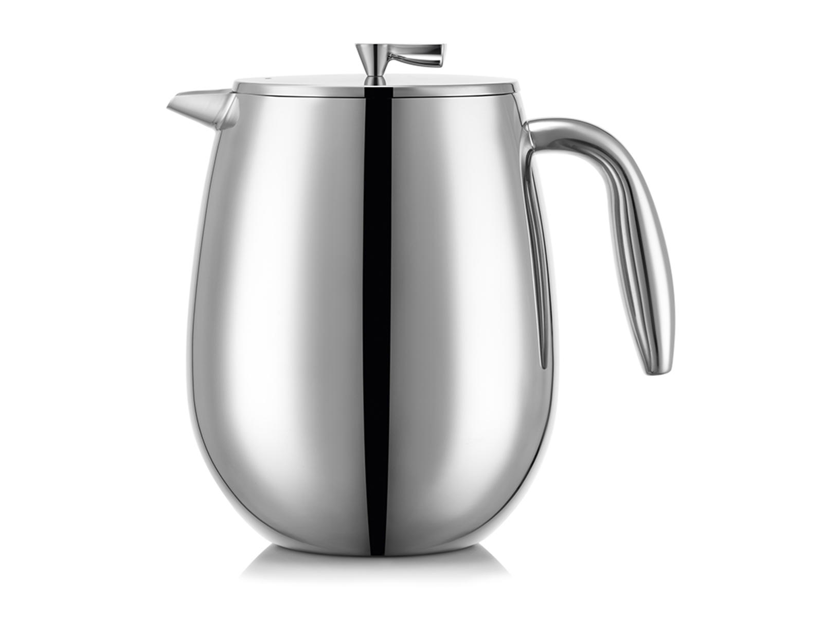 La cafetera de émbolo Colombia está hecha de acero inoxidable duradero con una capacidad de 1,5 litros (aproximadamente 12 tazas). Todas las partes se pueden desmontar para una fácil limpieza y son aptas para lavavajillas. Se recomienda lavar la jarra a fondo con agua jabonosa caliente antes del primer uso. Para un sabor óptimo del café, utiliza granos de café molidos gruesos y agua calentada a 92-96°C.