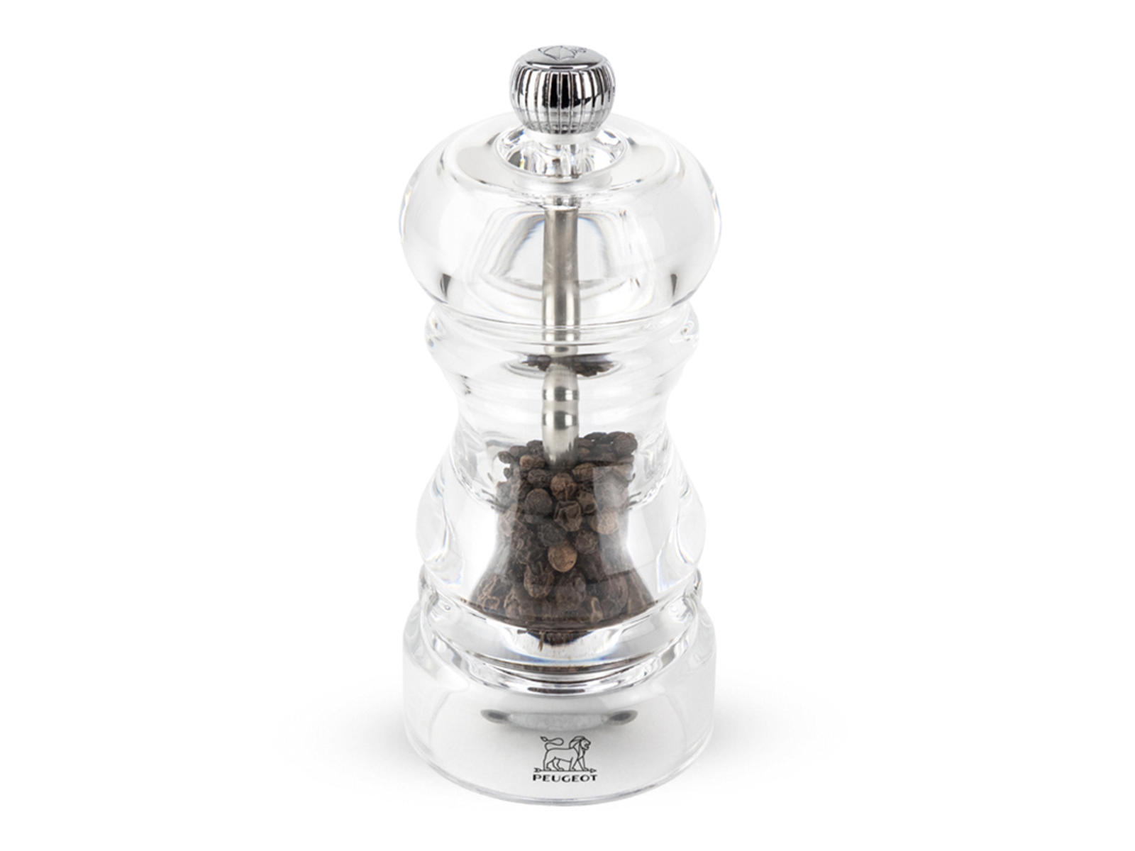 El molino Peugeot está equipado con un mecanismo de molienda especialmente desarrollado, que primero quiebra los granos de pimienta y luego los muele a la consistencia deseada. Este sistema de dos etapas libera los compuestos aromáticos de los granos de pimienta mucho mejor que la pimienta ya molida, brindándote una experiencia de sabor más intensa. El recipiente transparente de acrílico facilita ver cuándo es el momento de rellenarlo.
