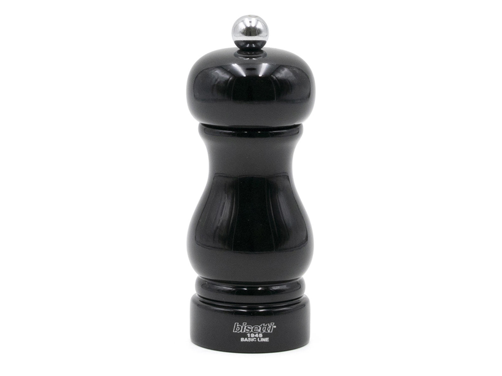 El molino de pimienta de Bisetti tiene una altura de 13 cm y está fabricado con una superficie lacada en negro que le da un aspecto elegante. El molino se vende como una unidad individual y está diseñado para moler granos de pimienta enteros. El fabricante italiano Bisetti es conocido por sus molinos de calidad con mecanismos de molienda precisos que garantizan un molido uniforme de las especias.