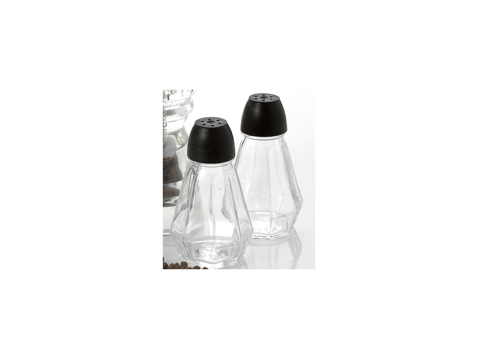 El diseño facetado del vidrio ofrece al salero una apariencia clásica y atemporal que se integra en decoraciones de mesa tanto modernas como tradicionales. El vidrio está fabricado en sodalita, conocido por su durabilidad y claridad. La tapa de plástico negro crea un bonito contraste con el vidrio y tiene un diseño funcional que asegura que la sal o la pimienta se distribuyan uniformemente al utilizar el salero.