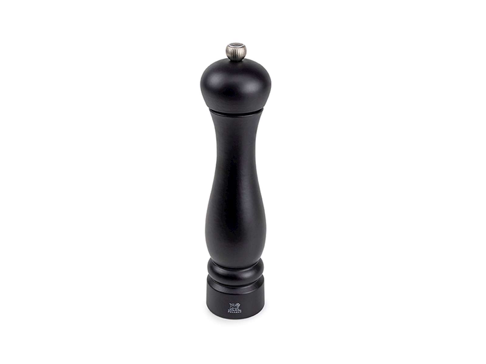 El molino de sal Peugeot Clermont en madera de haya negra combina un diseño clásico con una funcionalidad de primera calidad. Con sus 24 cm de altura, este elegante molino de madera y acero inoxidable se convierte en un elemento estilizado en tu cocina, mientras proporciona sal molida perfectamente para tus platos. La construcción bien pensada del molino asegura un molido uniforme y preciso en cada uso.