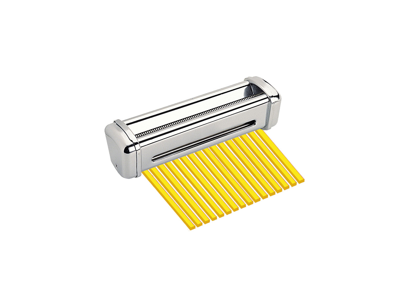 Con los accesorios Imperia Capelli para tu máquina de pasta SP150, puedes crear tiras de pasta ultrafinas con un grosor preciso de solo 0,8 mm. Este accesorio especializado está fabricado en acero inoxidable duradero y te permite elaborar la delicada pasta "Angel Hair", conocida por su elegante textura y su capacidad para absorber salsas ligeras.