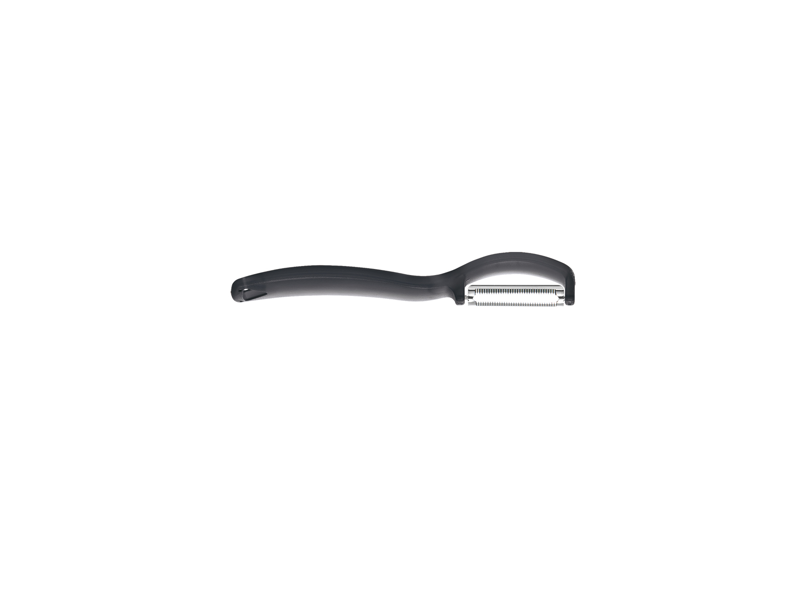 El diseño bien pensado con modelo oscilante hace que el pelador sea adecuado tanto para diestros como para zurdos. El mango ergonómico proporciona un agarre cómodo, incluso con un uso prolongado, minimizando la tensión en muñecas y dedos. Su color negro lo hace discreto en el cajón de la cocina, y su peso ligero de solo 40 gramos lo hace fácil de manejar.
