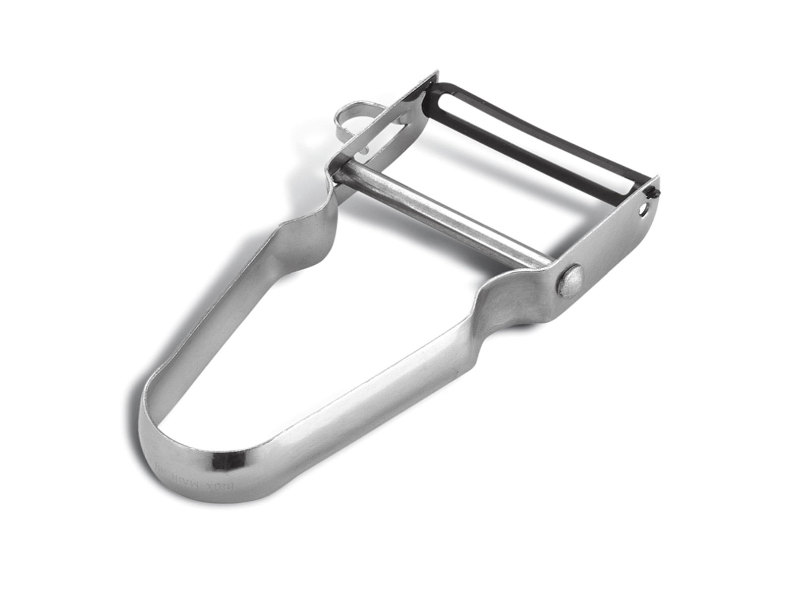 La cuchilla endurecida del pelador crea una superficie de corte afilada y duradera, que elimina fácilmente capas delgadas de verduras sin dañar la parte valiosa del ingrediente. El acero inoxidable 18/10 no solo garantiza durabilidad, sino también resistencia a la corrosión y decoloración, incluso con el uso diario en entornos de cocina concurridos.