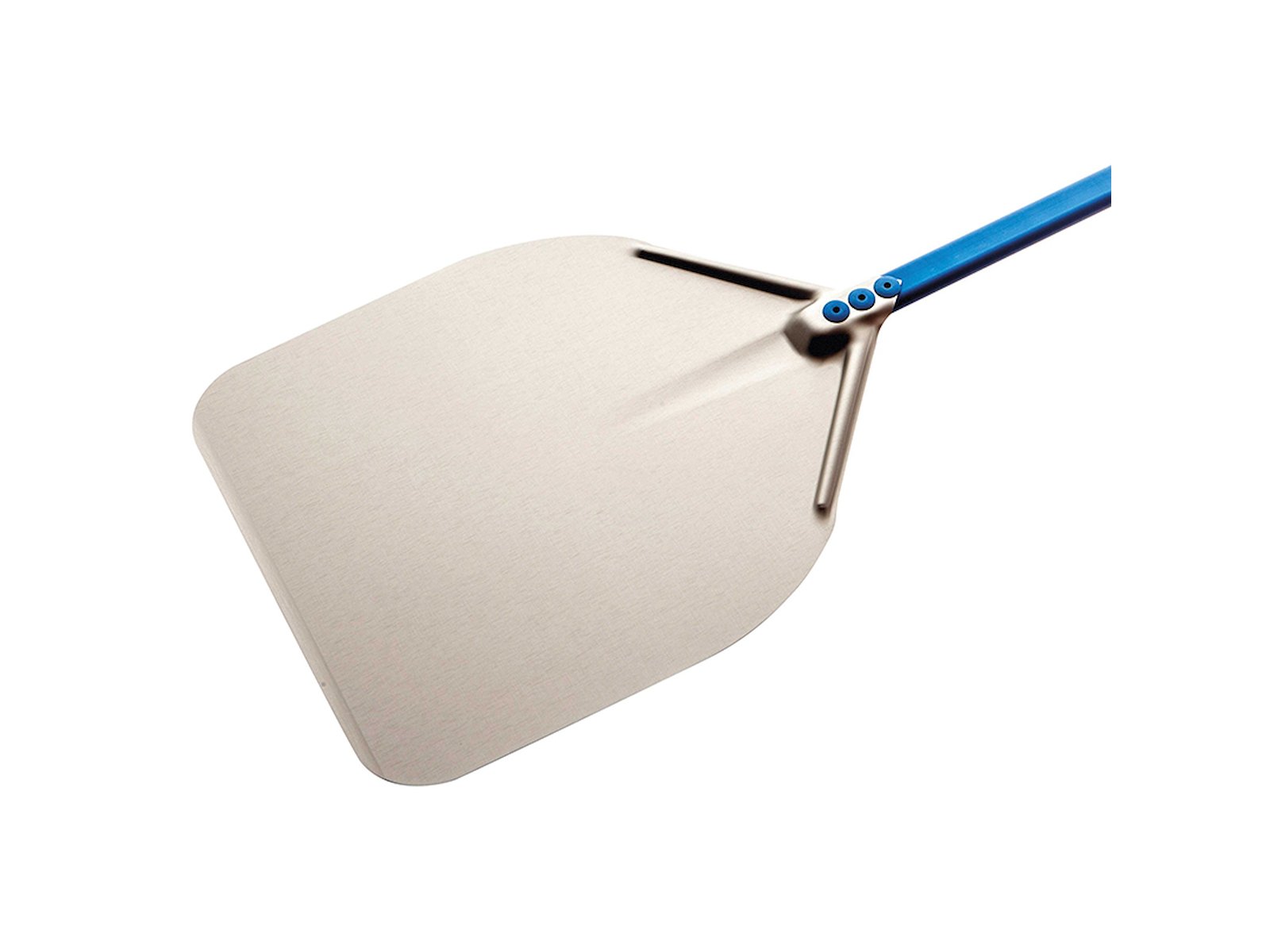 La espátula para pizza Azzurra, con una hoja de 33x33 cm y un mango de 150 cm de largo, te ofrece un control óptimo al manipular pizzas. Esta herramienta ha sido fabricada específicamente para el personal de cocina profesional que trabaja en la preparación de pizzas. La espátula está diseñada para hacer que el trabajo de introducir y retirar pizzas del horno sea lo más sencillo y seguro posible.
