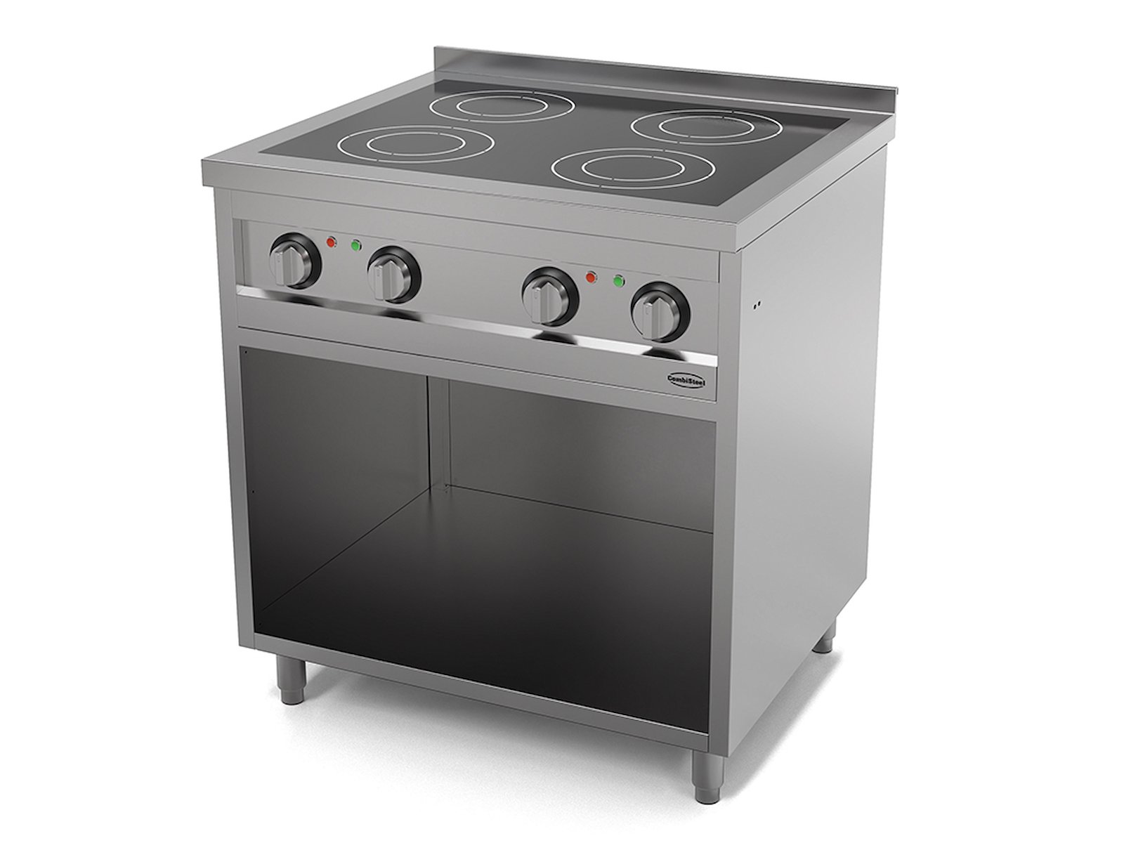 Con cuatro zonas de cocción independientes, el personal de cocina puede preparar varios platos al mismo tiempo sin comprometer la calidad. La construcción robusta está diseñada para soportar el uso diario en cocinas profesionales concurridas. La superficie es fácil de limpiar, ya que los residuos de comida no se adhieren a la superficie fría alrededor de las zonas de cocción. Las dimensiones estandarizadas de 800x700x941 mm aseguran una fácil integración en líneas de cocina existentes y proporcionan una apariencia coherente.
