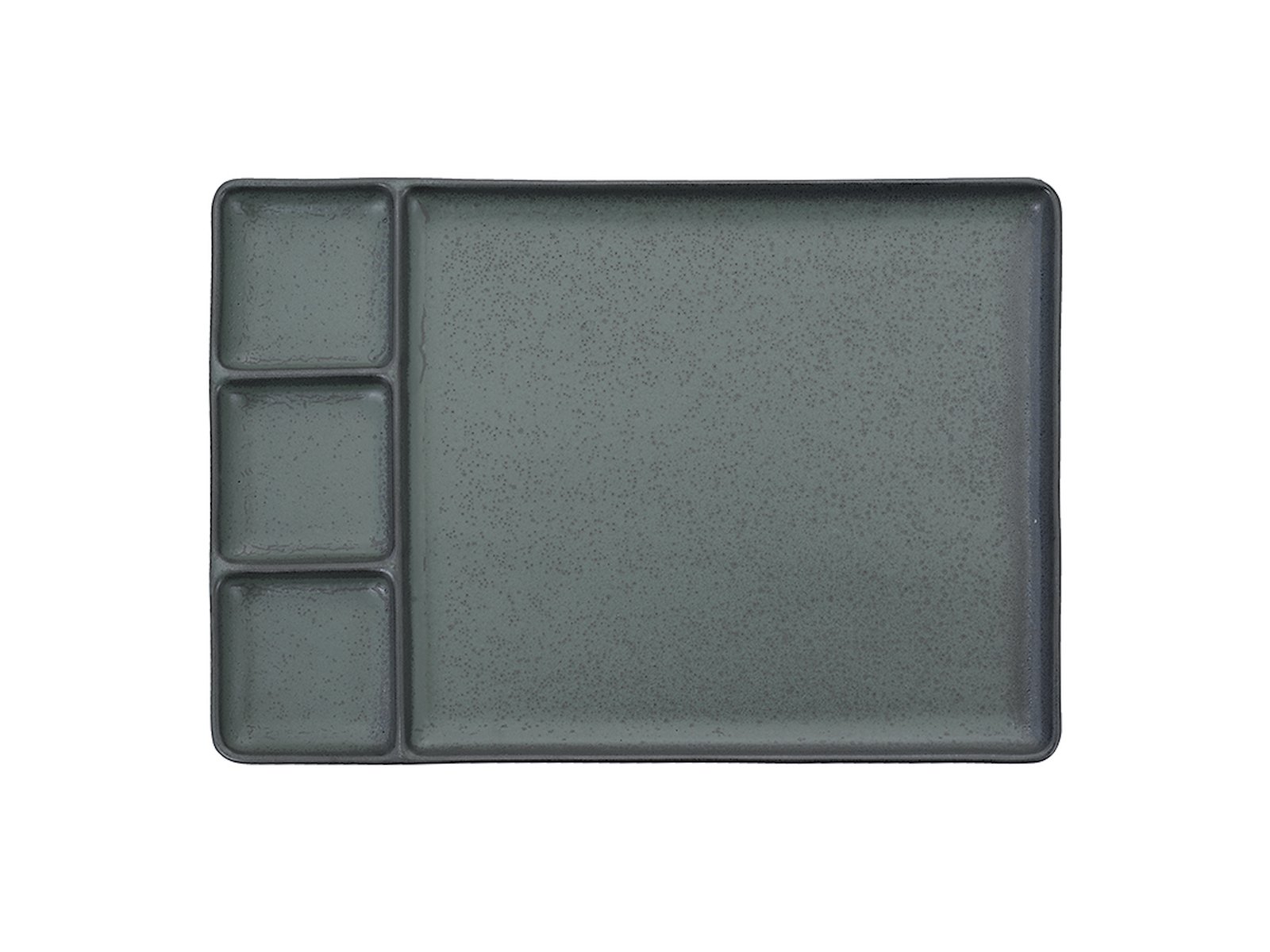 Este plato rectangular de cerámica con tres pequeños compartimentos y un compartimento grande te ofrece una solución elegante y práctica para servir tapas, sushi u otros aperitivos. El color gris nórdico con su discreta superficie brillante añade un toque sofisticado a la mesa, mientras que la cuidadosa división de los espacios mantiene los diferentes ingredientes separados.