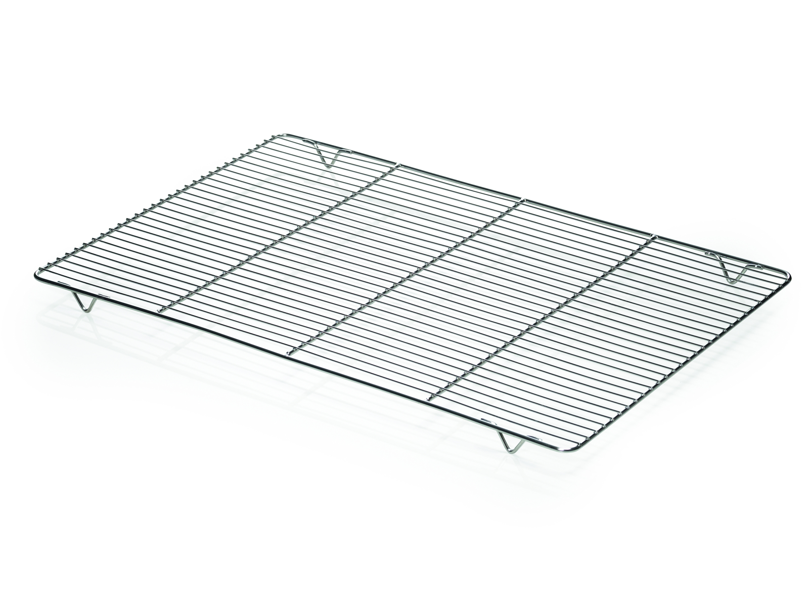 El marco de la rejilla está reforzado con tres travesaños de 5 mm de diámetro, mientras que los 28 alambres de acero inoxidable de 2 mm de diámetro crean una base fuerte y estable. Esta construcción le da a la rejilla una impresionante capacidad de carga de hasta 23 kg, lo que la hace adecuada incluso para los productos de repostería más pesados. Además, la construcción en acero inoxidable resiste el uso diario en entornos de cocina ocupados sin perder funcionalidad ni apariencia.