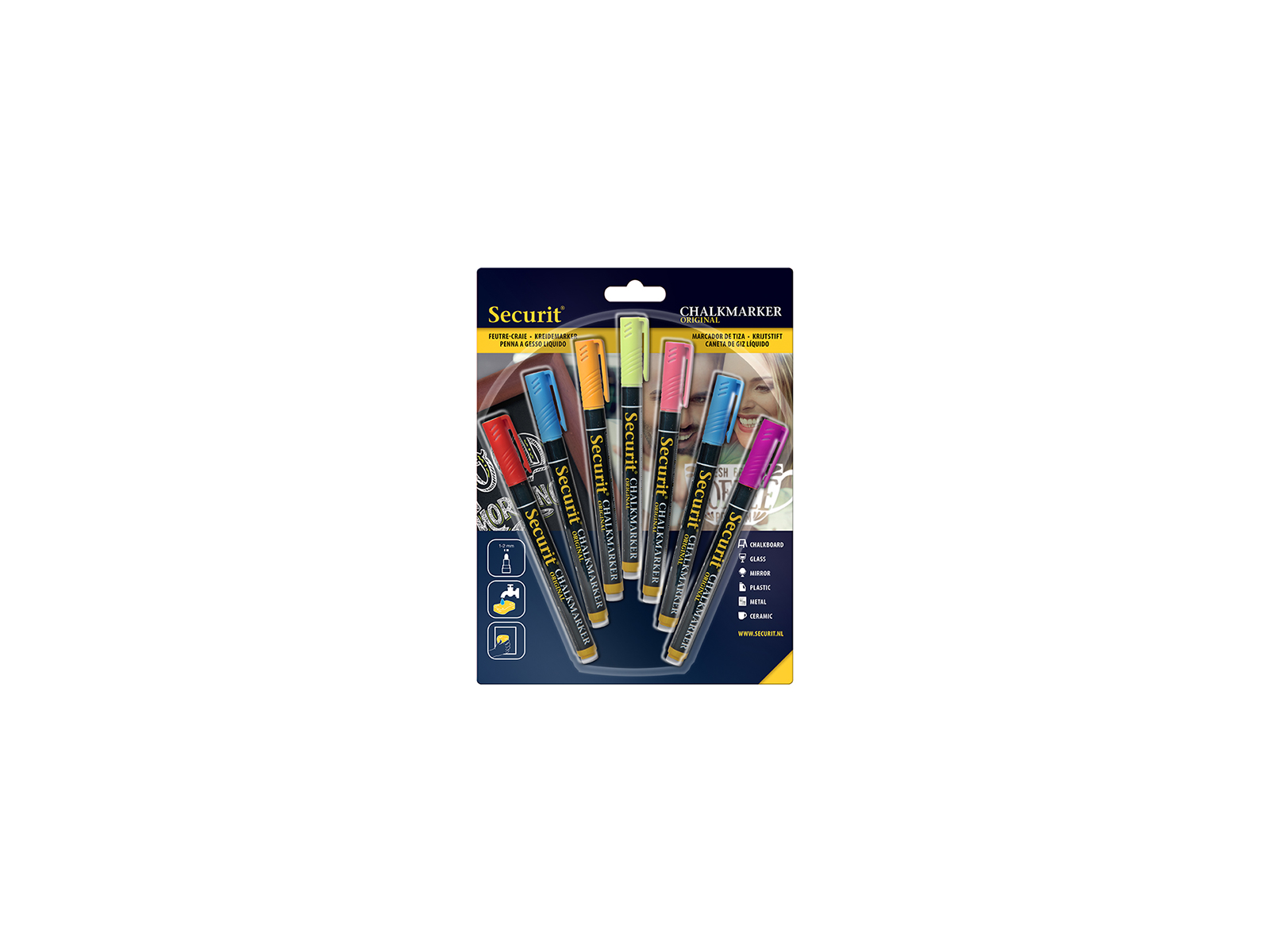 Este paquete de 7 marcadores líquidos de tiza Vermes Securit te ofrece versatilidad para escribir y dibujar en pizarras, ventanas y otras superficies lisas. Con una punta fina y redonda de 1-2 mm, los marcadores garantizan una línea precisa que hace que tus mensajes sean claros y profesionales. Los marcadores vienen en colores surtidos, lo que te permite crear publicaciones variadas y llamativas.