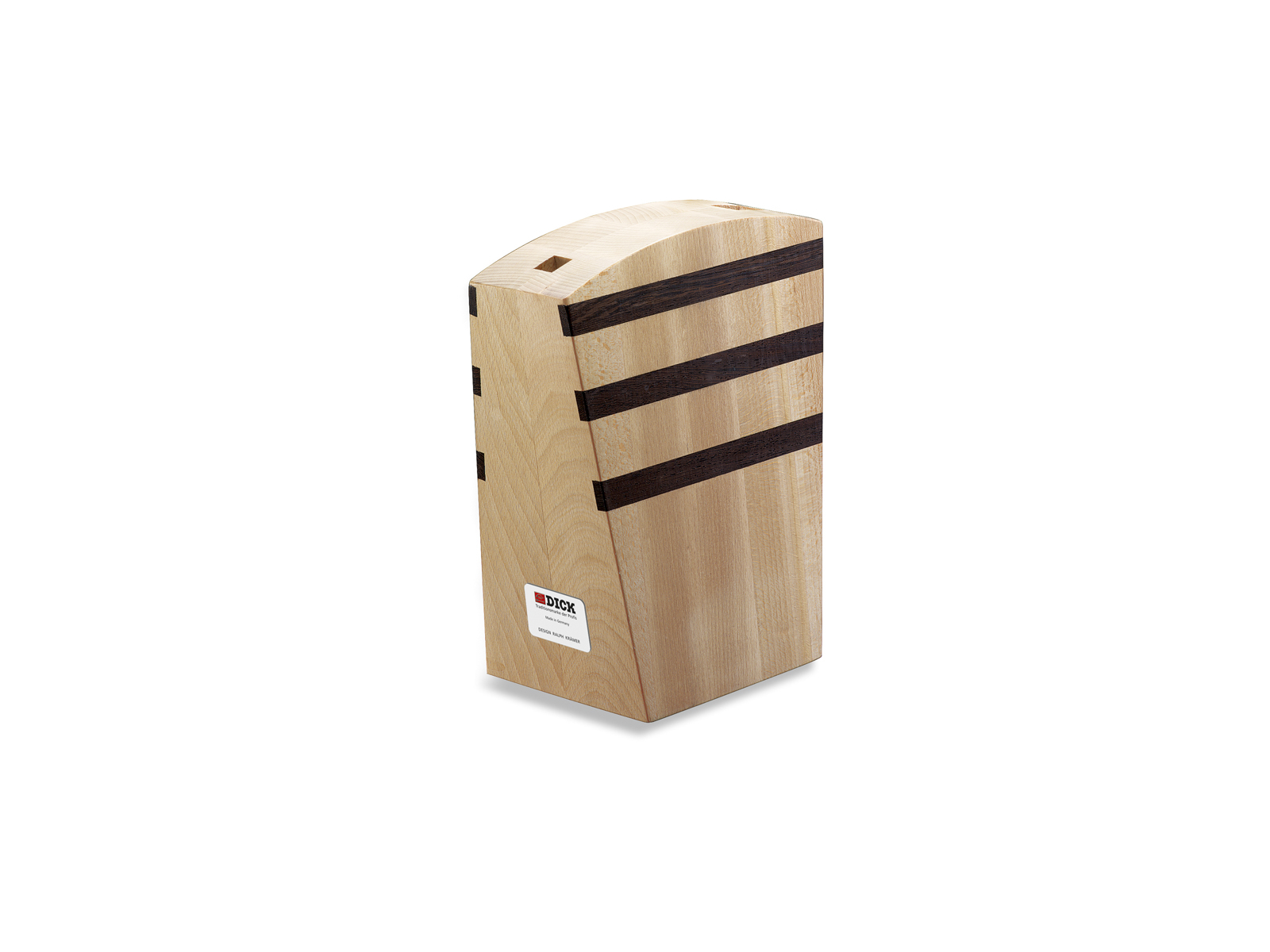 Este bloque de cuchillos hecho a mano de F. Dick está fabricado en madera de haya maciza y diseñado por el diseñador de productos Ralph Krämer. El bloque de cuchillos magnético combina funcionalidad y estética en un diseño elegante que no solo protege tus cuchillos, sino que también actúa como un elemento decorativo en la cocina. Con imanes integrados en ambos lados, asegura que tus cuchillos se almacenen de forma segura, al mismo tiempo que siempre están fácilmente accesibles.