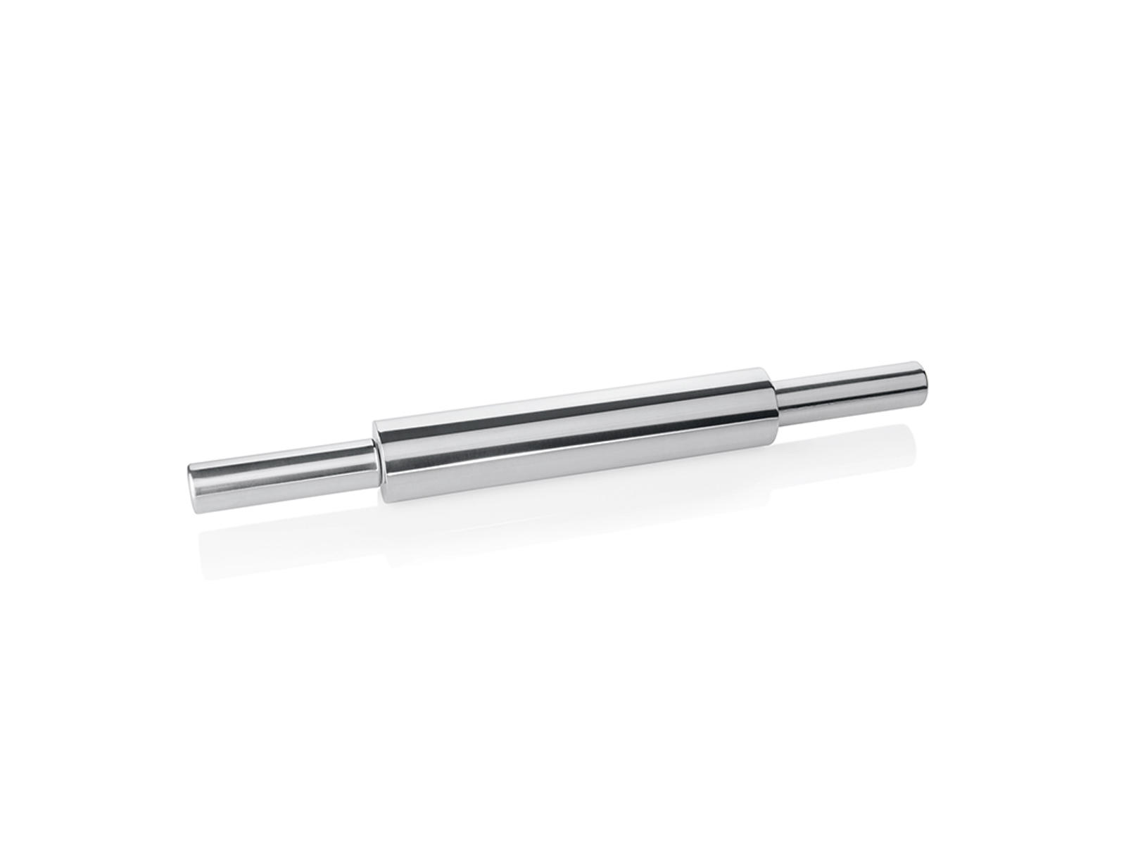 El rodillo tiene una longitud total de 47 cm con una longitud de rodado efectiva de 25 cm. Su diámetro es de 5 cm, lo que proporciona un buen equilibrio entre maniobrabilidad y peso. Fabricado en acero inoxidable de alta calidad 18/10 con un peso de 1,4 kg, que ofrece estabilidad durante su uso. La superficie es brillante y lisa, lo que minimiza el riesgo de que la masa se adhiera al rodillo.