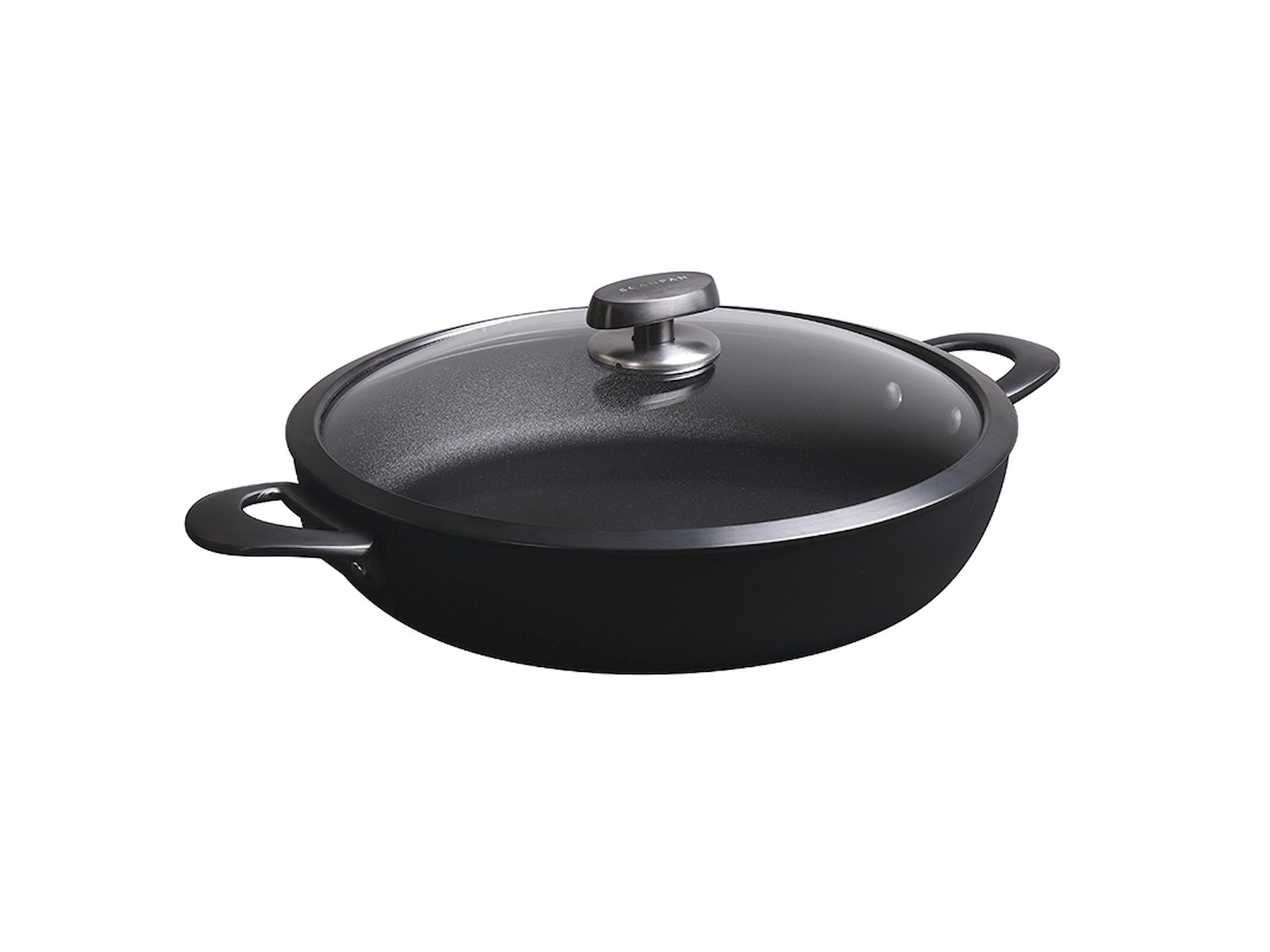 Como parte de la serie Pro SB+, esta sartén representa el compromiso de Scanpan con la sostenibilidad. Fabricada con aluminio reciclado, se reduce el impacto medioambiental sin comprometer la calidad. El acabado negro le da a la sartén un aspecto atemporal que se adapta a cualquier cocina, mientras que su sólida construcción, con un peso de 3,52 kg, asegura estabilidad durante la cocción.