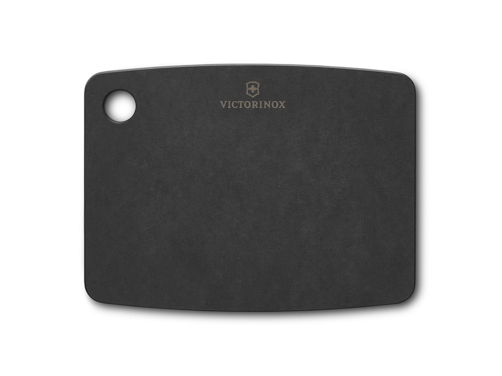 Esta tabla de cortar Victorinox mide 203x152 mm, lo que la convierte en una práctica tabla de tamaño S. Con sus 227 gramos, es fácil de manejar y mover en la cocina. El material es fibra de madera en color negro, que ofrece un diseño elegante y ventajas prácticas en términos de durabilidad y cuidado de los cuchillos. La tabla ha sido probada para resistir temperaturas de hasta 175 grados.