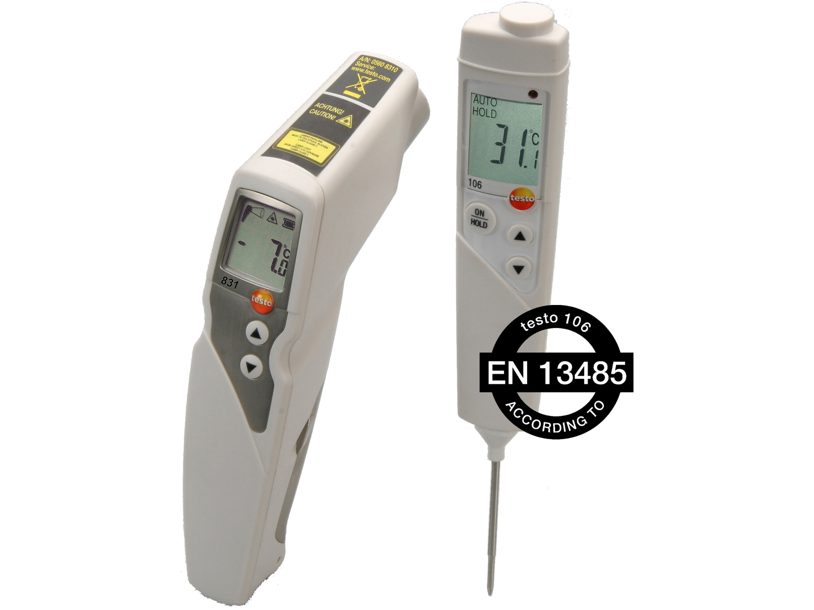 - Conjunto completo con termómetro IR (Testo 831) y termómetro de inserción (Testo 106)