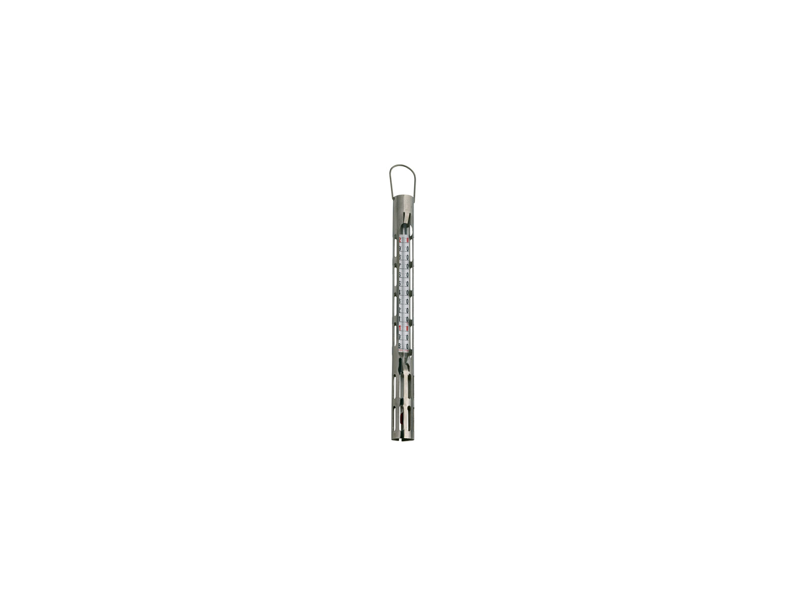 La escala fácil de leer del termómetro facilita la lectura precisa de la temperatura durante la cocción. El líquido rojo en el cuerpo de vidrio proporciona un contraste claro contra la escala, asegurando lecturas correctas incluso en entornos de cocina ocupados. La funda de acero inoxidable protege el termómetro de golpes, impactos y otras influencias que pueden ocurrir en una cocina activa. Con una longitud de 300 mm, el termómetro puede alcanzar fácilmente el centro de diferentes platos y alimentos.