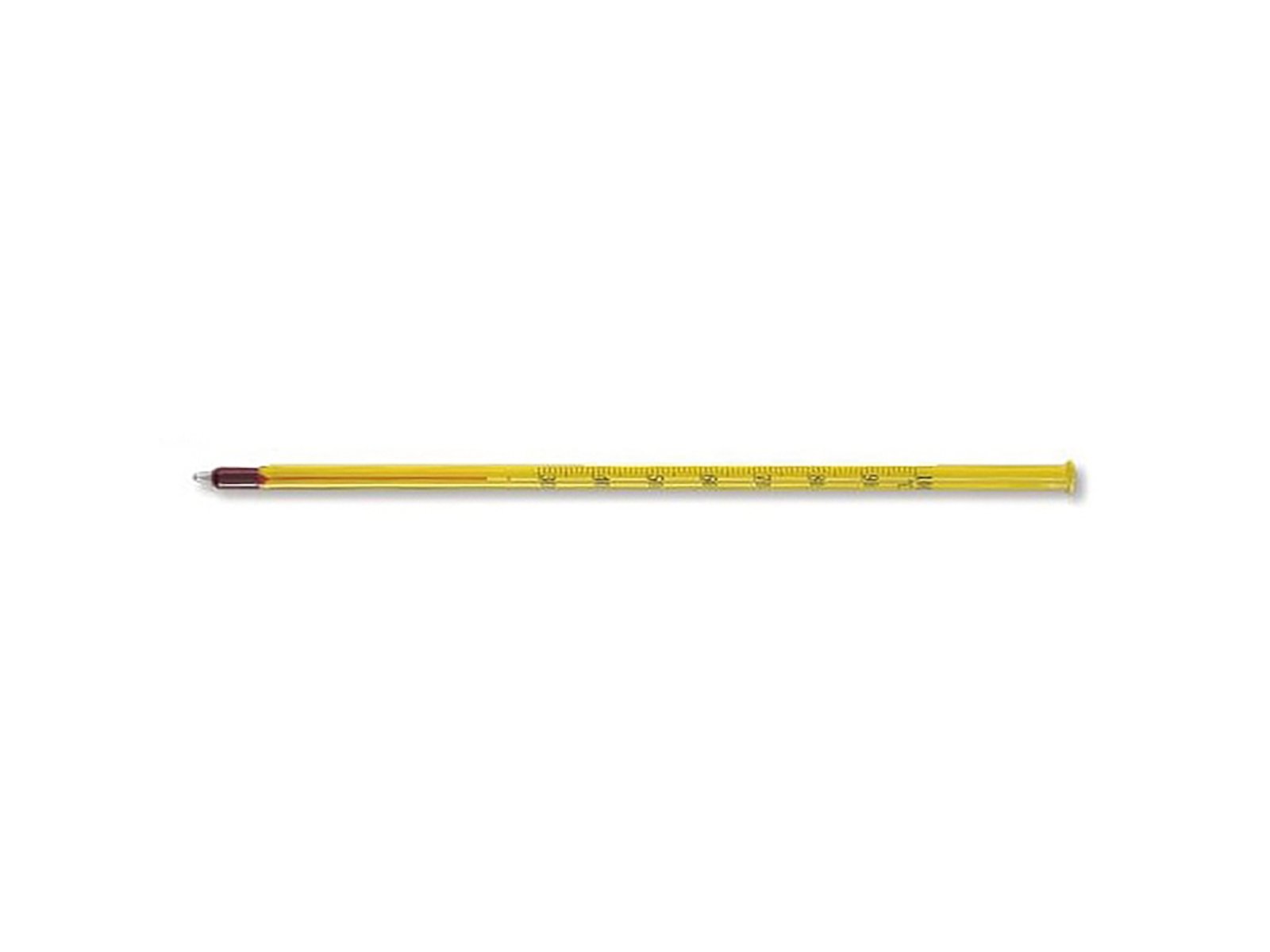 El termómetro está fabricado con vidrio duradero y cuenta con una escala de medición clara que abarca el rango de temperatura de +30°C a +100°C. Con una longitud de 265 mm y un ancho de solo 10 mm, se puede utilizar fácilmente incluso en recipientes pequeños. Su bajo peso de 20 gramos lo hace cómodo de usar, incluso durante preparaciones prolongadas.