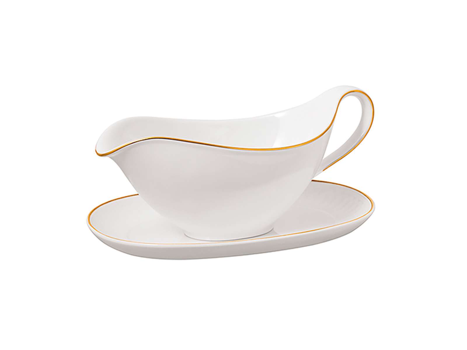 Sí, la jarra de salsa de la serie Chateau Septfontaines se vende por separado y está diseñada para encajar perfectamente con este plato bajo.