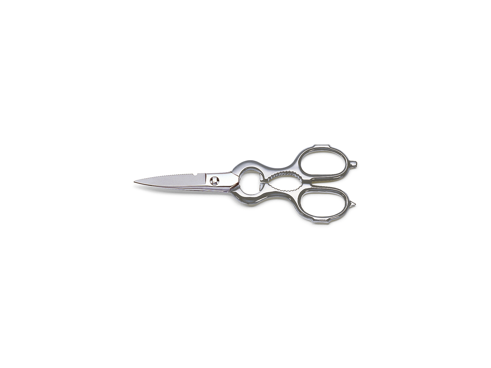 Estas tijeras de cocina de alta calidad de F. Dick están fabricadas en acero inoxidable, con una longitud de 20 cm y un peso de 210 gramos. El filo serrado garantiza cortes precisos a través de diversos materiales, desde hierbas y verduras hasta envases y carne. Además, las tijeras cuentan con funciones integradas para abrir botellas, latas y tapas roscadas.