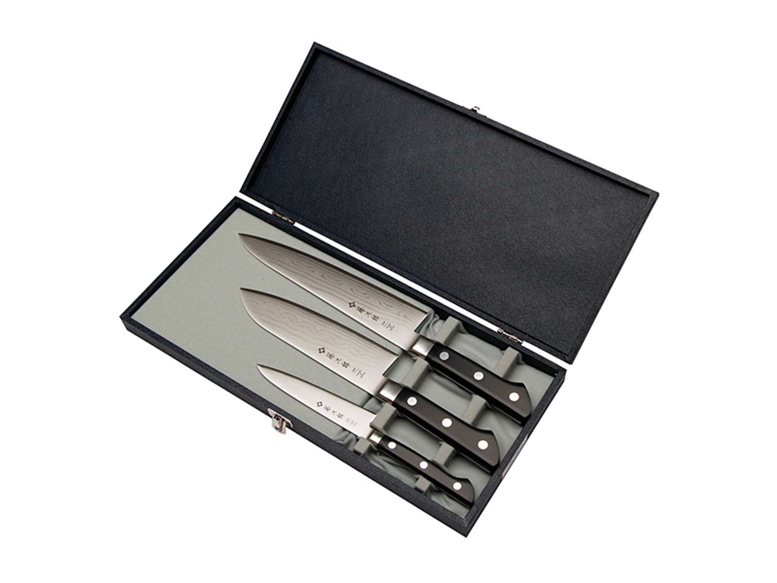 - Tres cuchillos especializados en resistente acero VG10 (60 HrC)