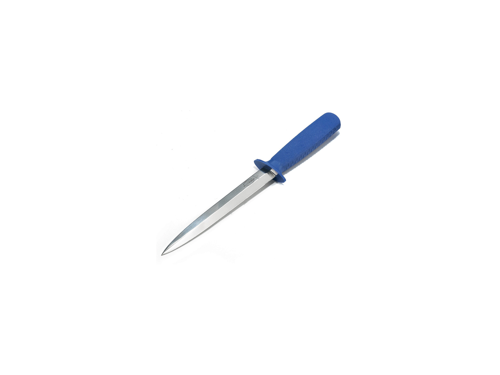 El mango ErgoGrip azul está cuidadosamente diseñado con enfoque en la seguridad y comodidad durante trabajos prolongados. El notable tope para los dedos evita que la mano deslice hacia adelante sobre la hoja, mientras que el amplio soporte para el pulgar proporciona estabilidad adicional. El mango está completamente moldeado sin juntas y tiene una superficie antideslizante que asegura un agarre firme incluso con manos húmedas o grasientas. La parte trasera redondeada reduce los puntos de presión en la palma, lo que disminuye el riesgo de lesiones por esfuerzo en un uso intensivo.